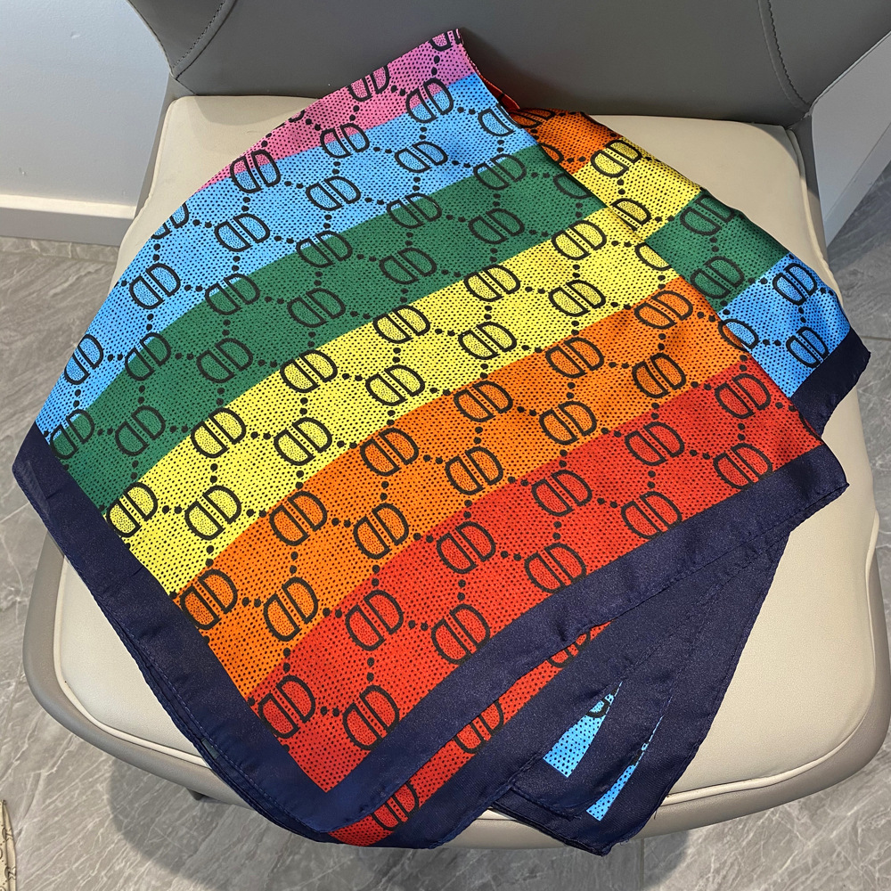 새로운 레인보우 스트라이프 레터 프린팅 70cm 작은 사각 스카프 패션 캐주얼 레이디 실크 스카프 모조 실크 새틴 스카프