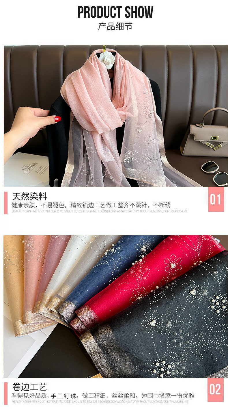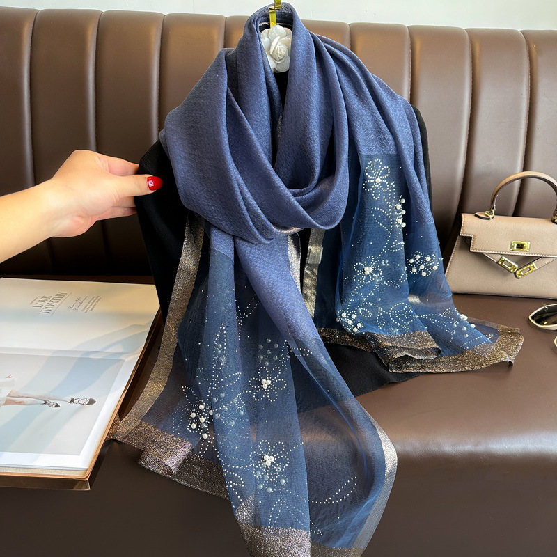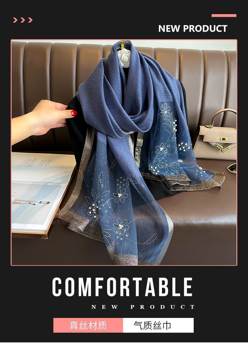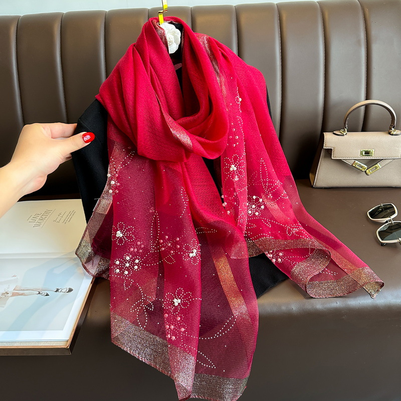 새로운 우아한 모든 매치 다이아몬드 꽃 실크 스카프 여성의 유행 네일 비즈 따뜻한 장식 스카프 숄