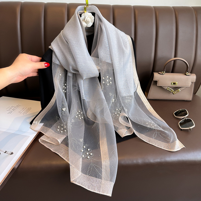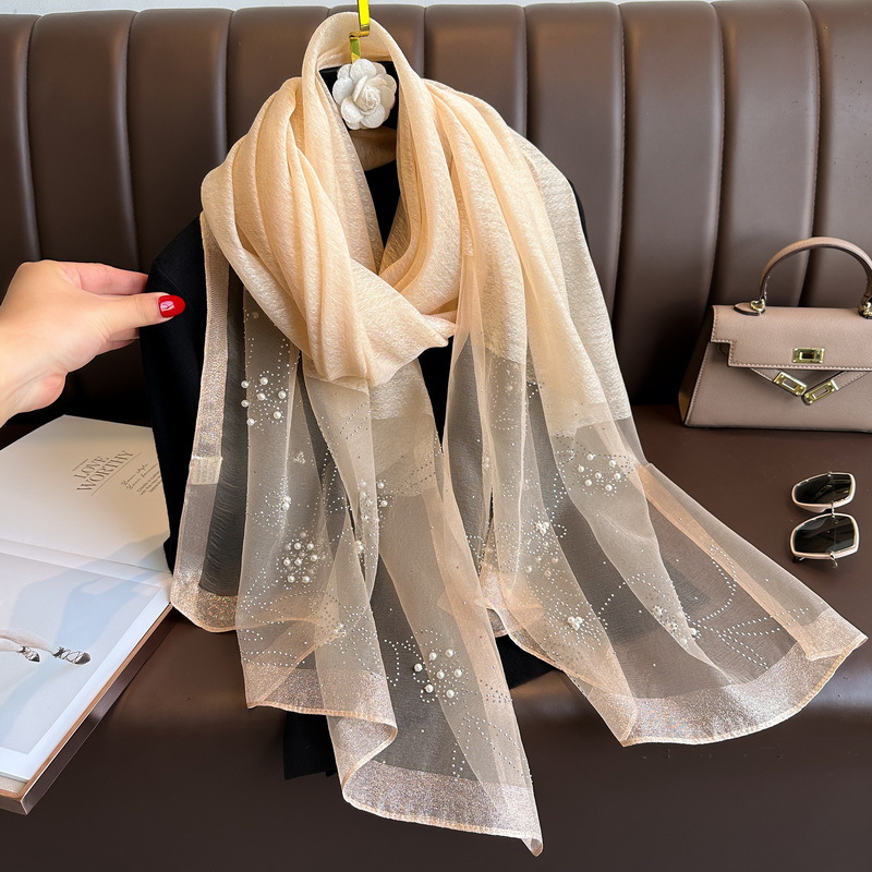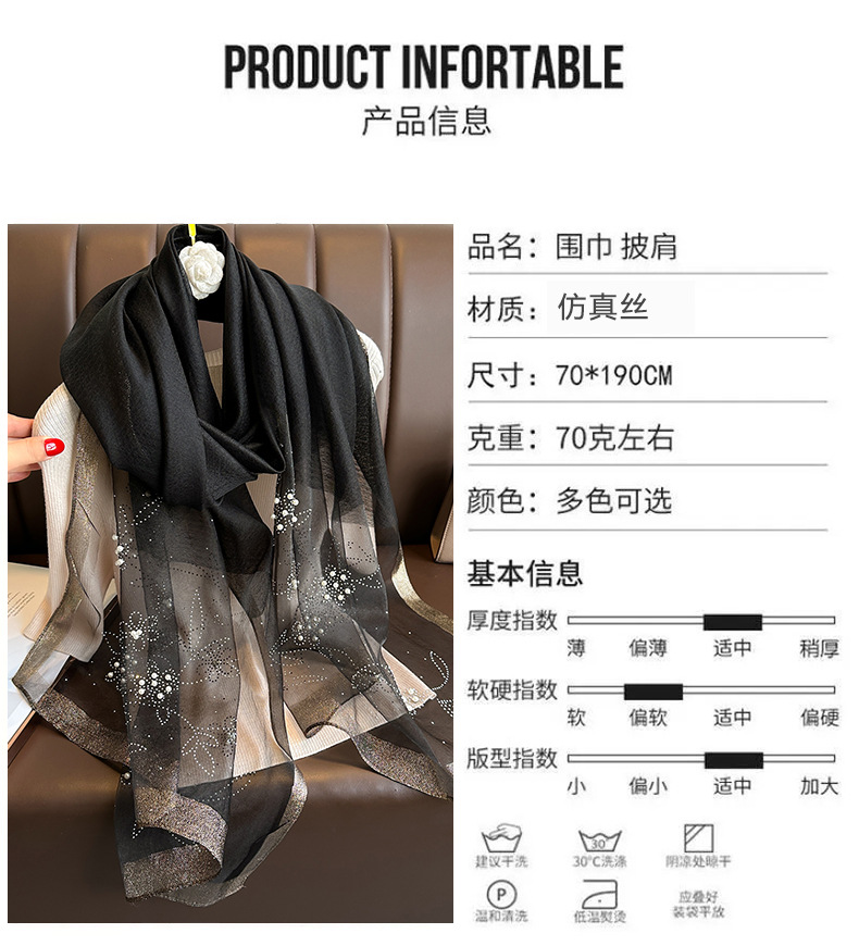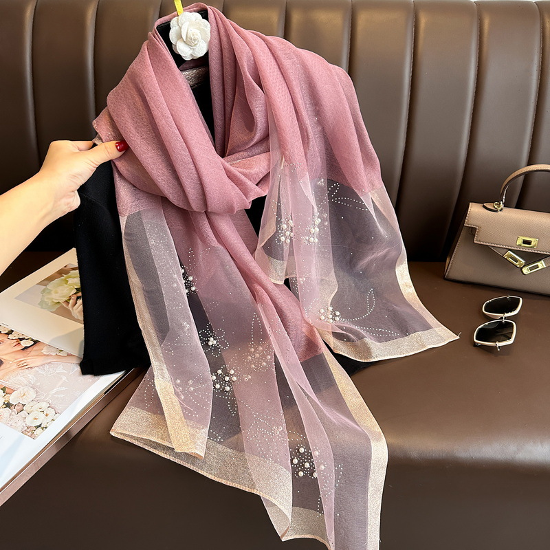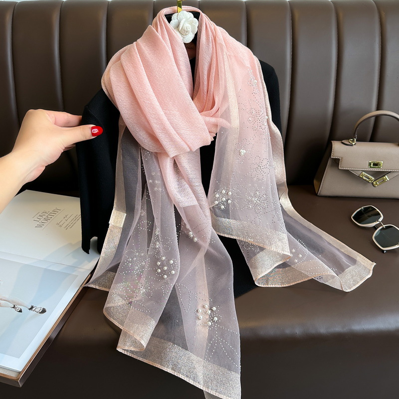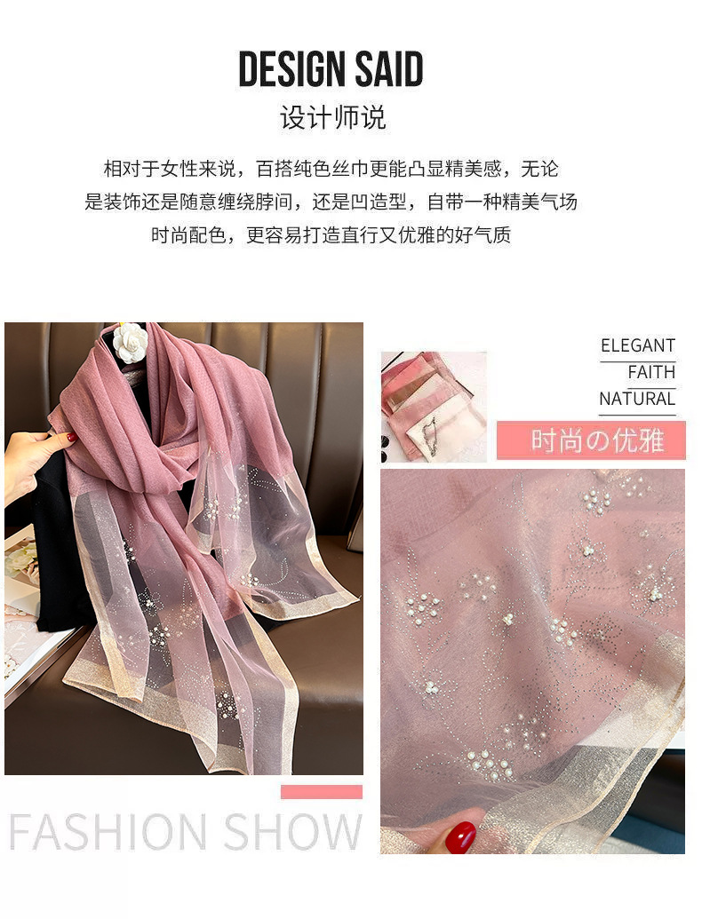 새로운 우아한 모든 매치 다이아몬드 꽃 실크 스카프 여성의 유행 네일 비즈 따뜻한 장식 스카프 숄