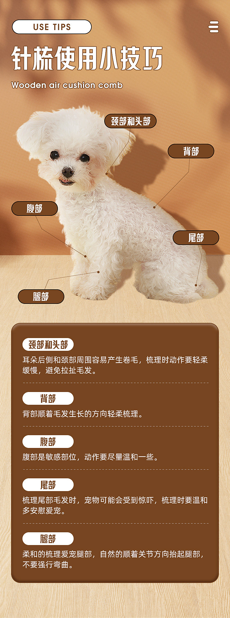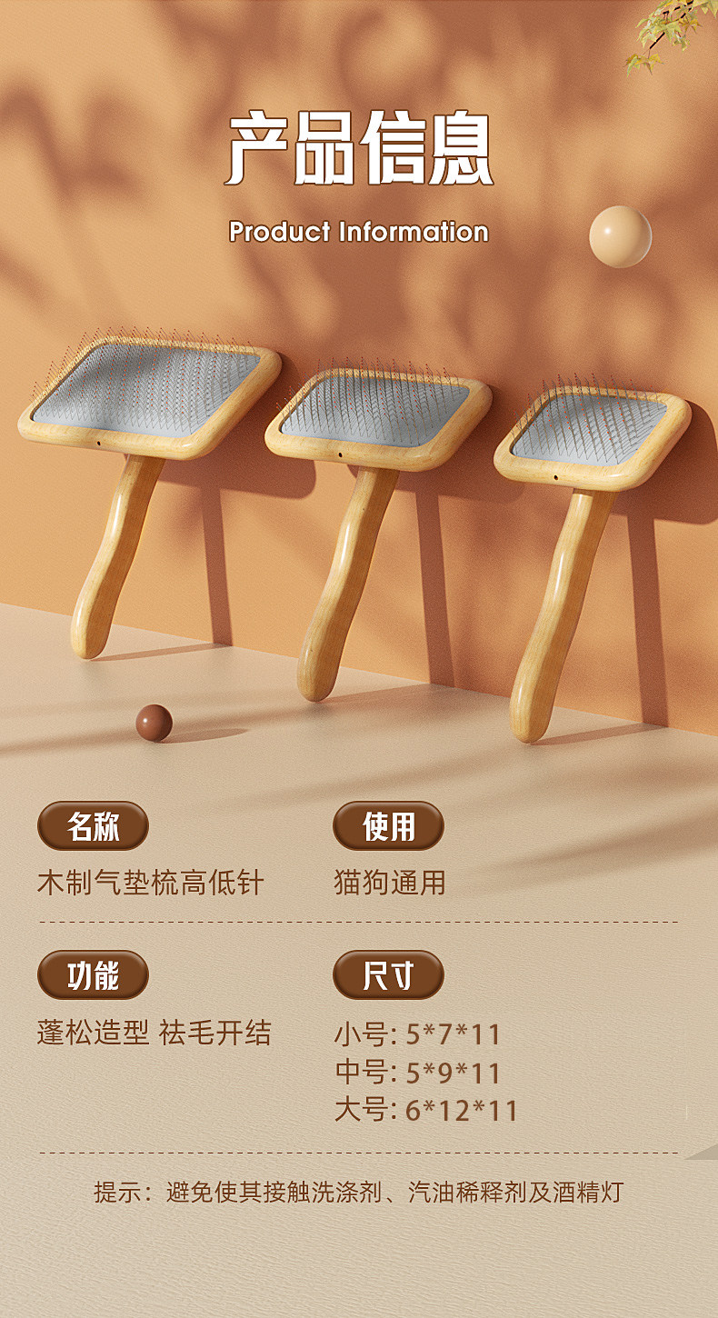 【名称】: 木制气垫梳高低针(带胶头)(小/中/大)