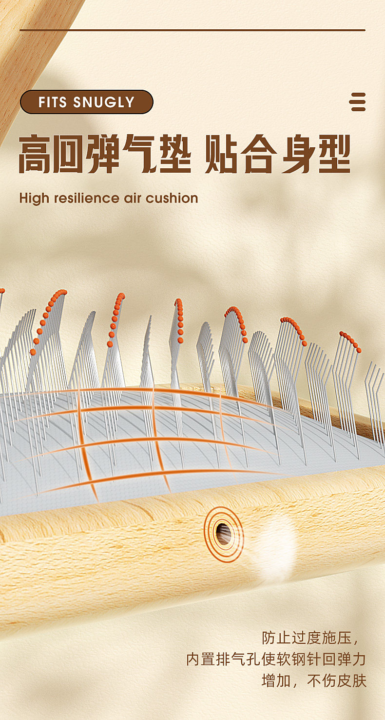 • 나무 에어 쿠션 빗 높고 낮은 바늘 (고무 헤드 포함) 대형