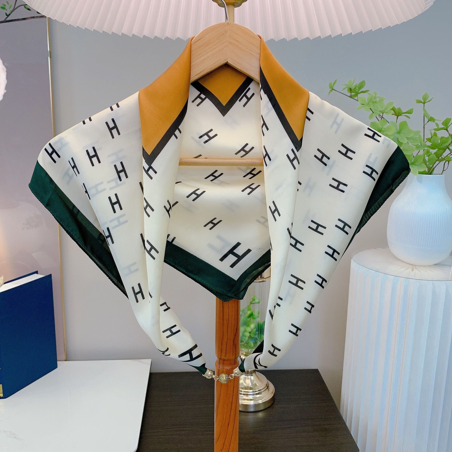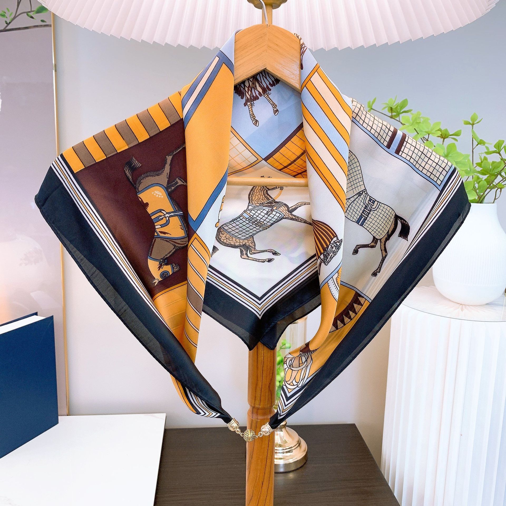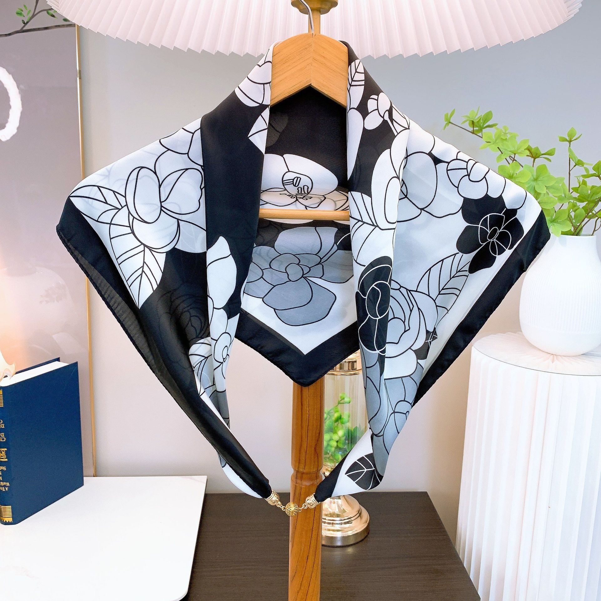 봄과 가을 패션 새로운 마그네틱 버클 스퀘어 스카프 우아한 여행 모든 매치 다기능 목걸이 스카프 인터넷 연예인 스카프스토어 가기