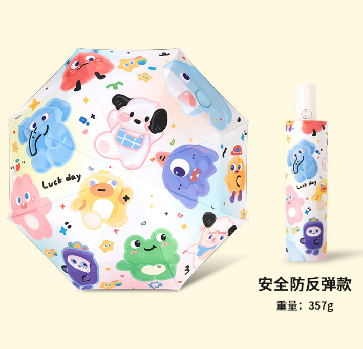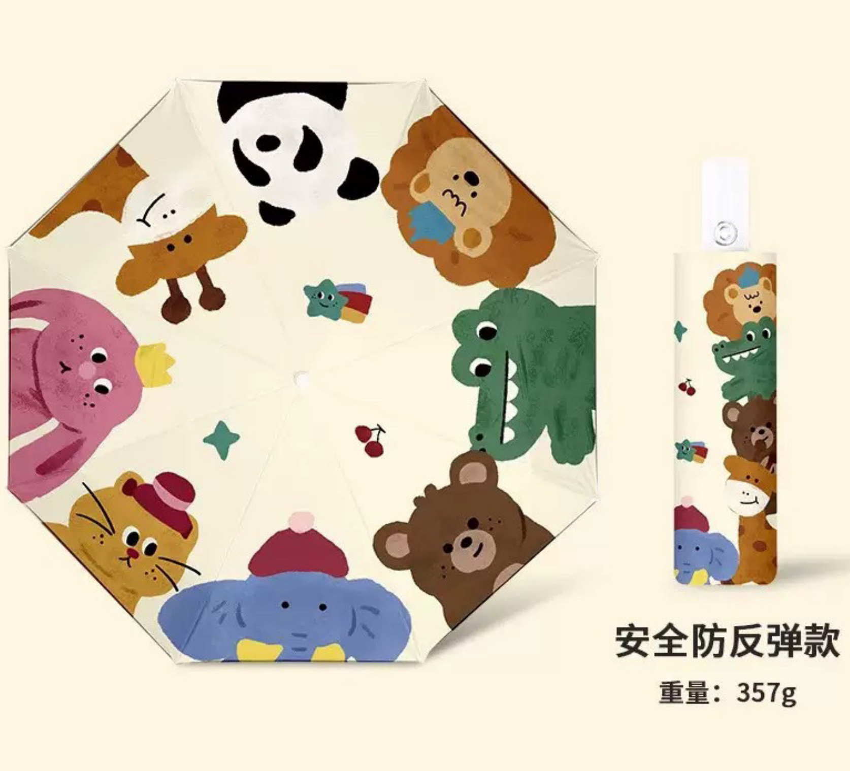 • 귀여운 짐승이 흰색 우산 손잡이를 휩쓸고 있습니다. 둥근 모서리가 자동으로 8k로 접힙니다. [안전 반사 스트립 포함]