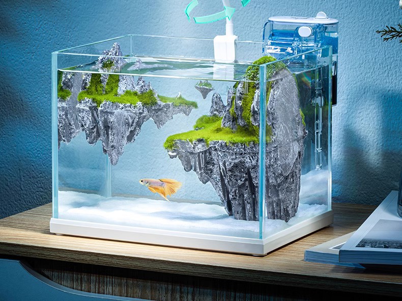 예 어항 거실 작은 데스크탑 슈퍼 화이트 유리 탱크 풍경 Dou 물고기 미니 생태 수족관 가정스토어 가기
