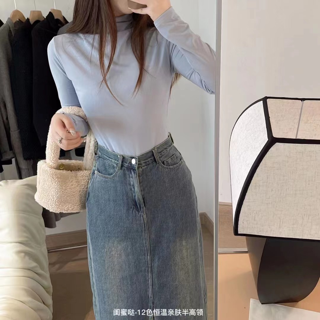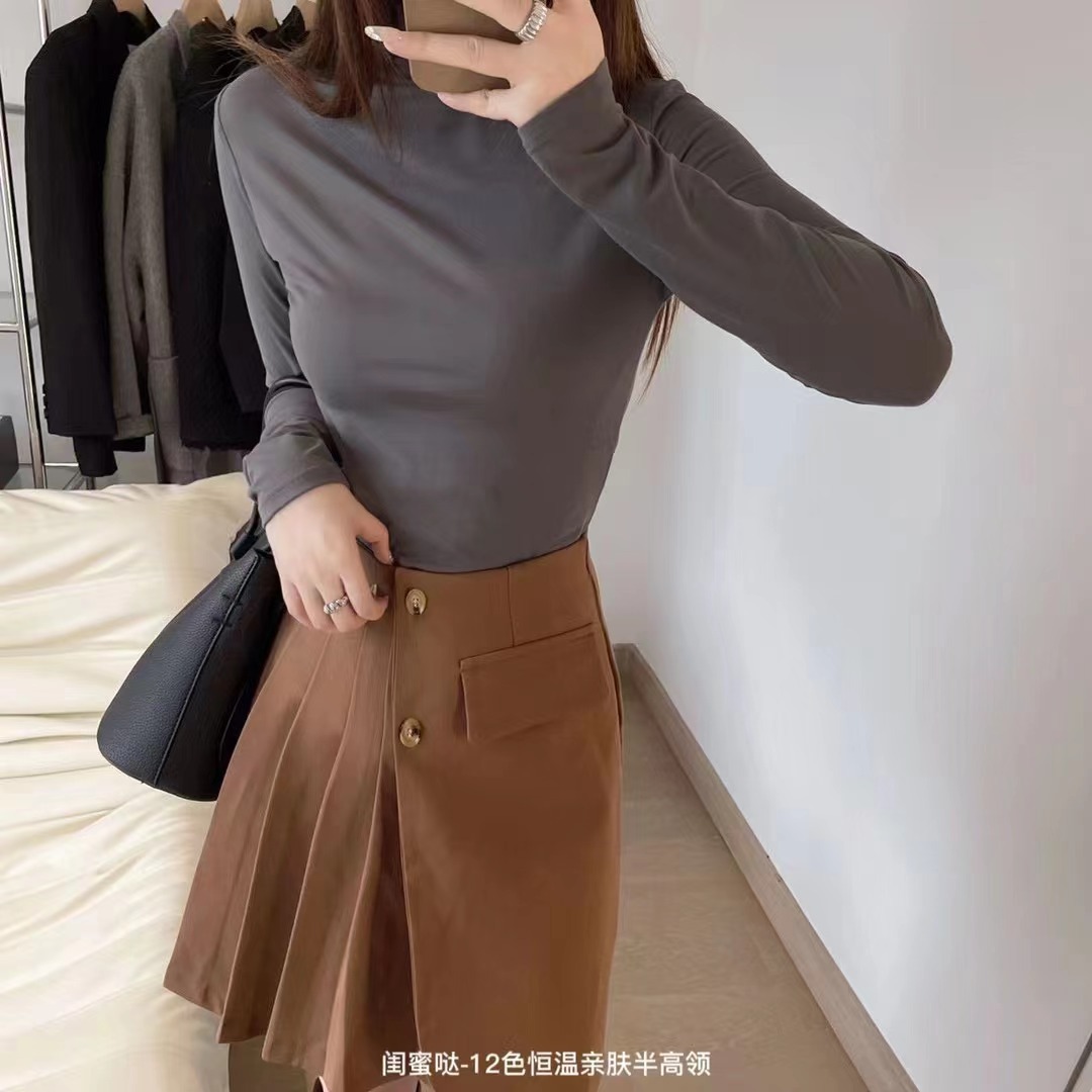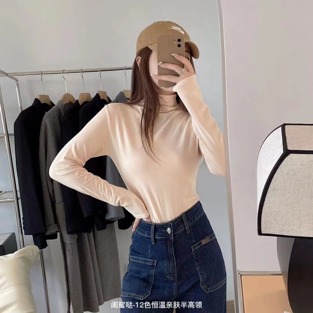 여자친구 12 색 일정 온도 피부 친화적인 세미 하이 칼라 보텀 셔츠 긴팔 티셔츠 가을과 겨울 외국식 내부 타이트 탑스토어 가기
