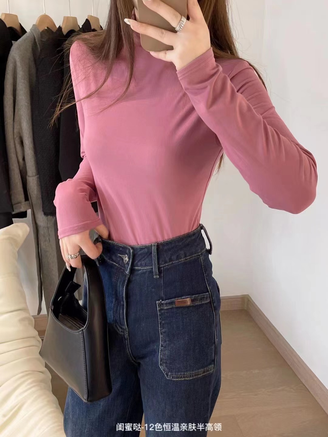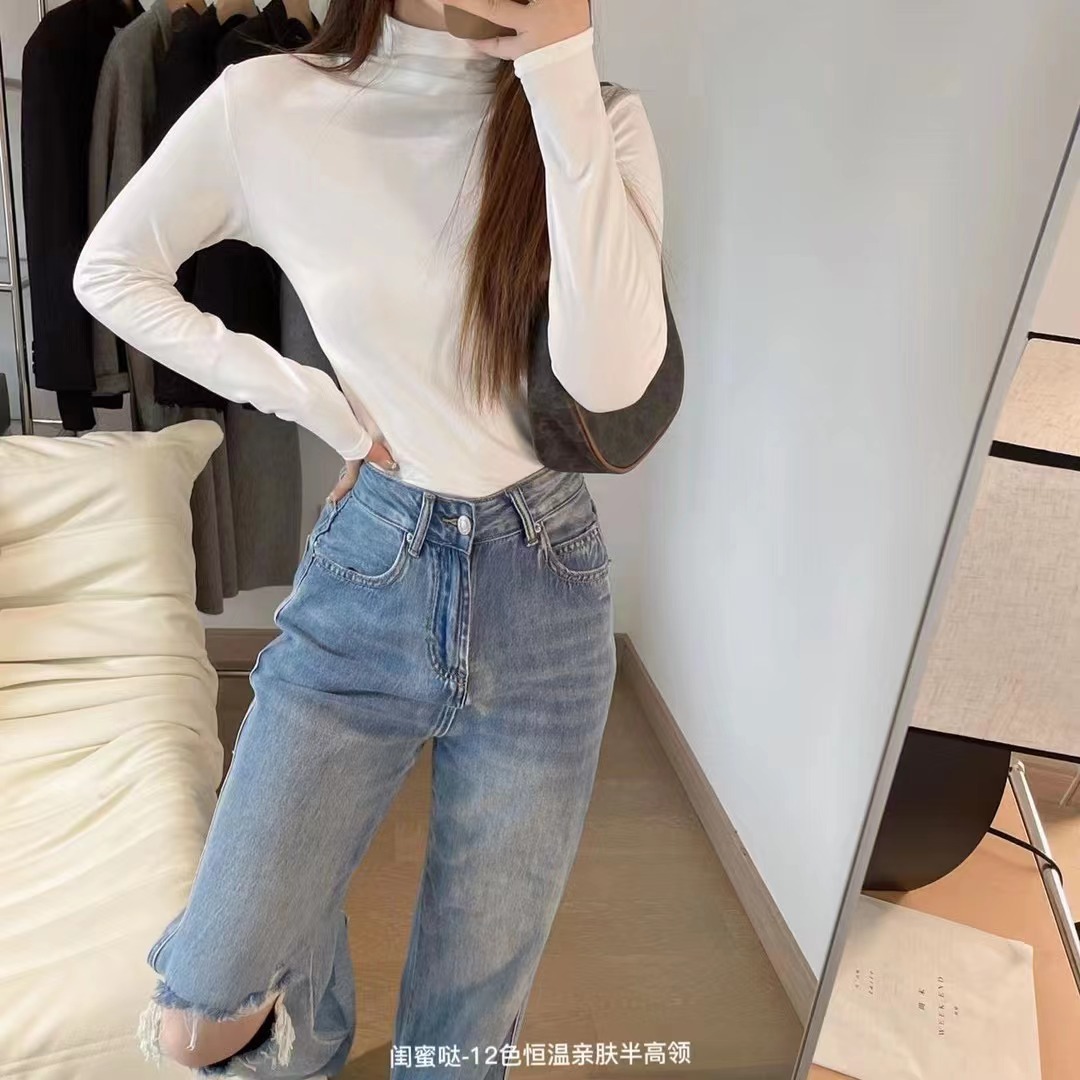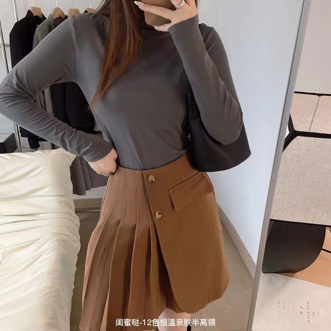 여자친구 12 색 일정 온도 피부 친화적인 세미 하이 칼라 보텀 셔츠 긴팔 티셔츠 가을과 겨울 외국식 내부 타이트 탑스토어 가기