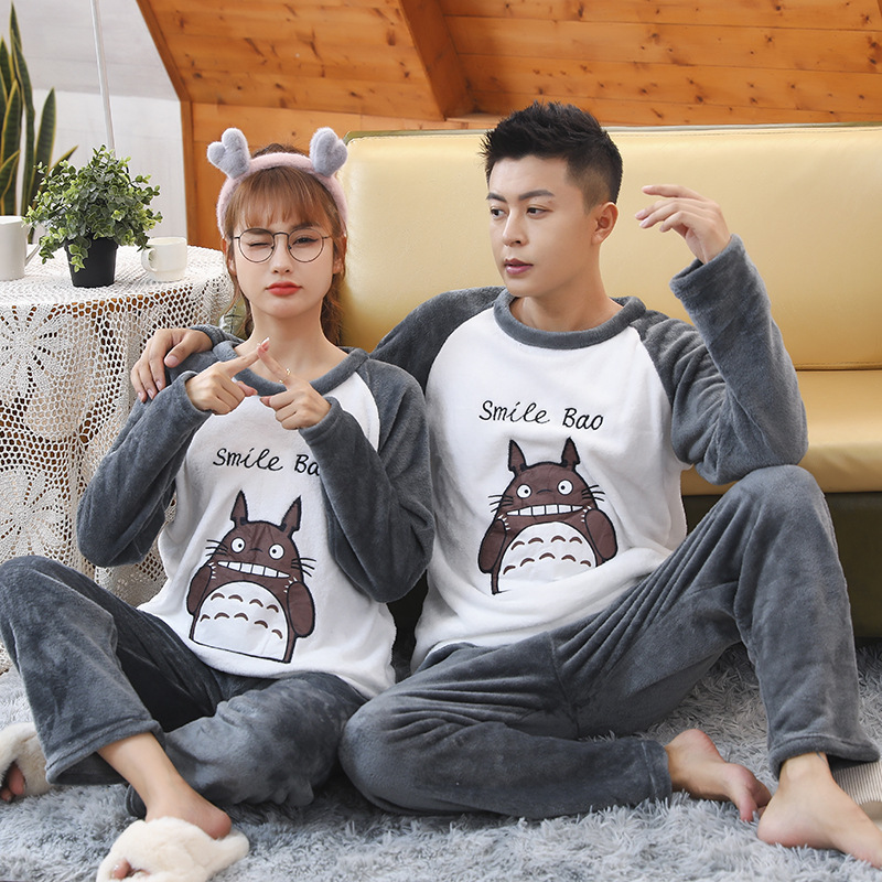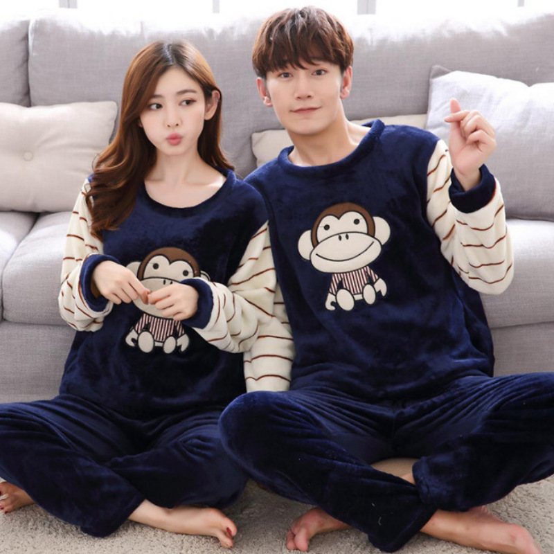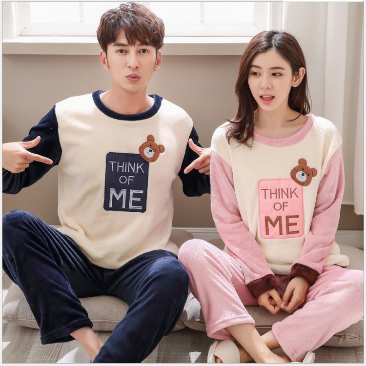 가을과 겨울 산호 양털 커플 파자마 여성의 겨울 두꺼운 기모 플란넬 남자 홈 옷 세트 겨울스토어 가기