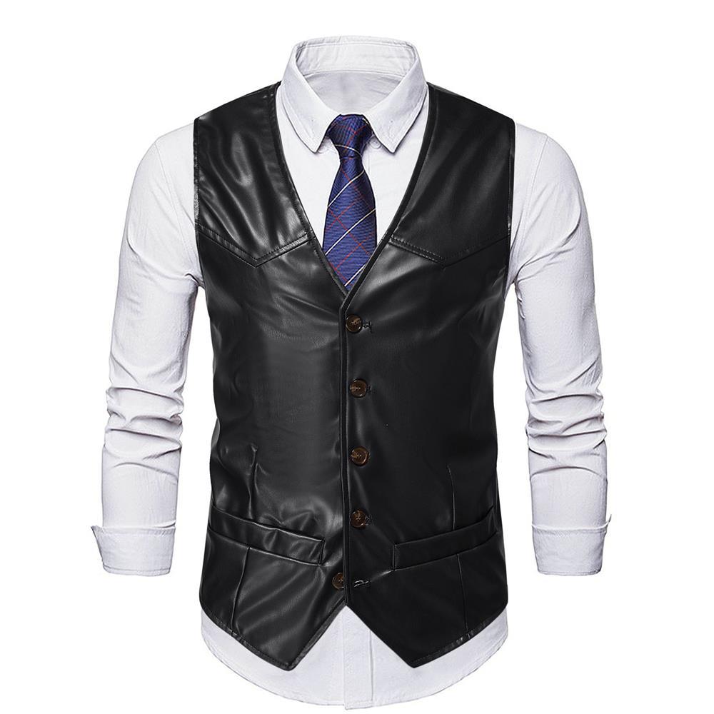 2023 가을과 겨울 새로운 크로스 보더 남성용 유럽 사이즈 싱글 브레스트 가죽 조끼 아마존 대외 무역 남성 캐주얼 조끼