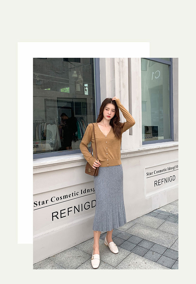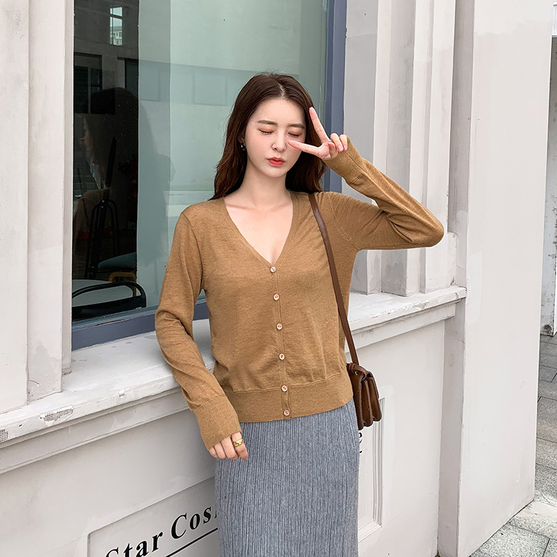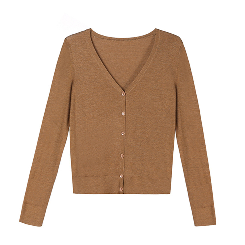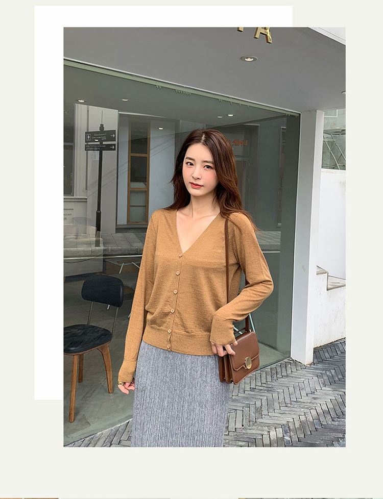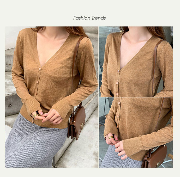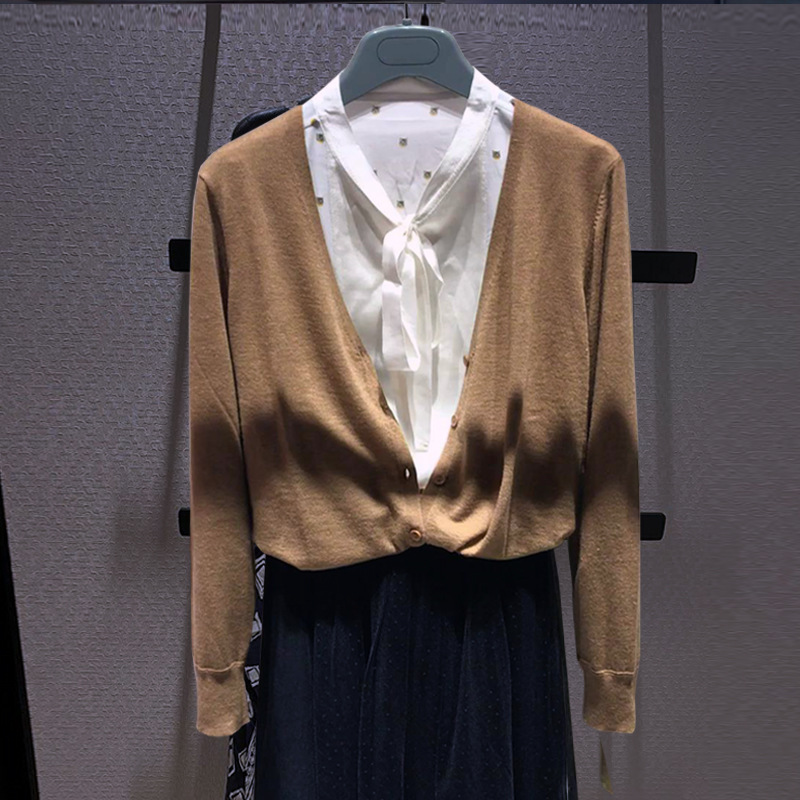 형의 새로운 여성 의류 2023 봄과 가을 새로운 슬림 울 V 넥 재킷 코트 스웨터 카디건