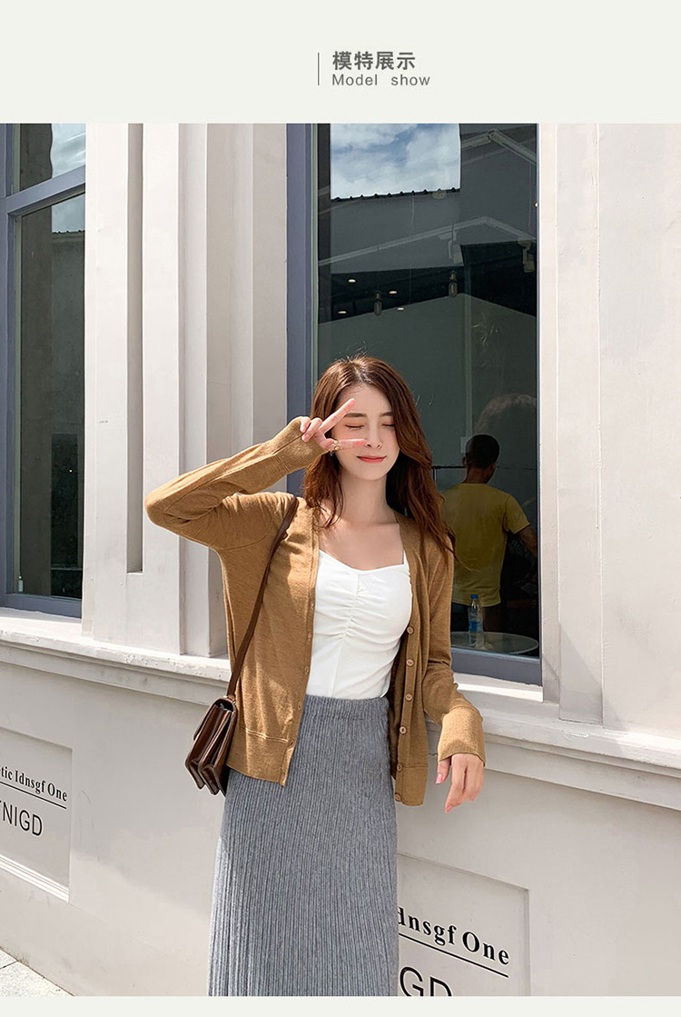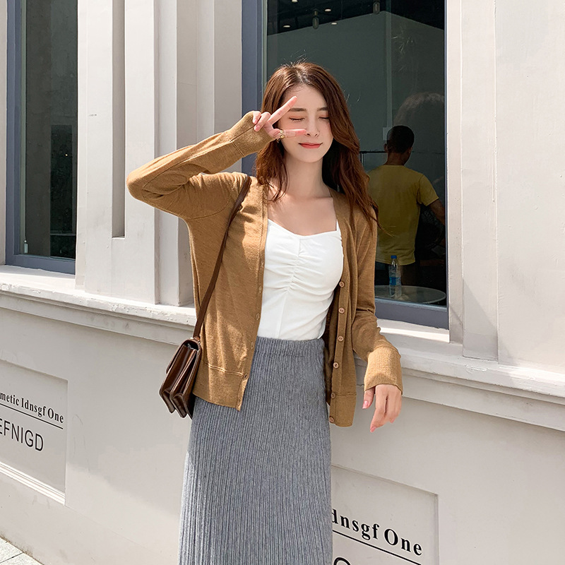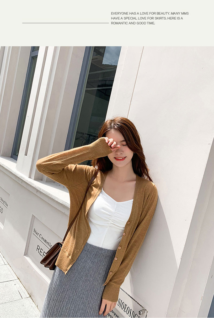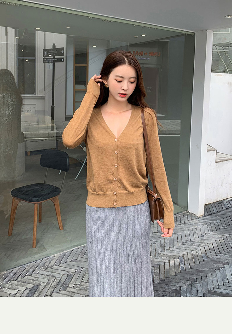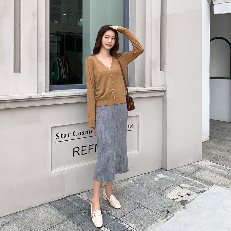 형의 새로운 여성 의류 2023 봄과 가을 새로운 슬림 울 V 넥 재킷 코트 스웨터 카디건