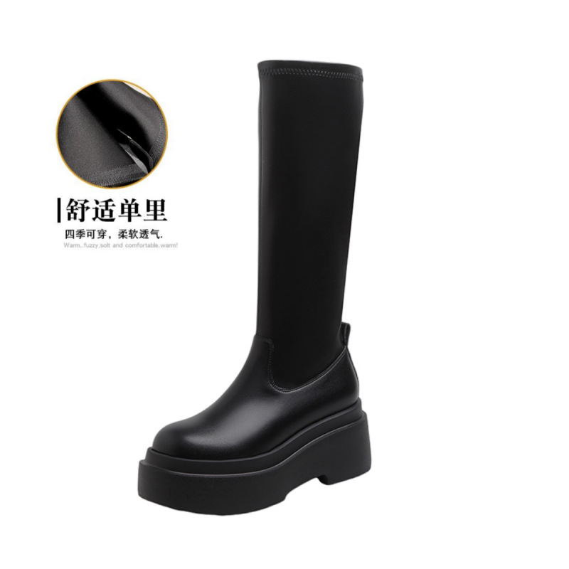 2023 가을과 겨울 새 부츠 여성 부츠 가죽 두꺼운 바닥 하이힐 스트레치 얇은 부츠 그러나 무릎 높은 부츠