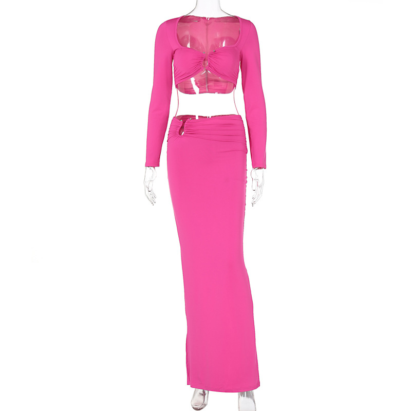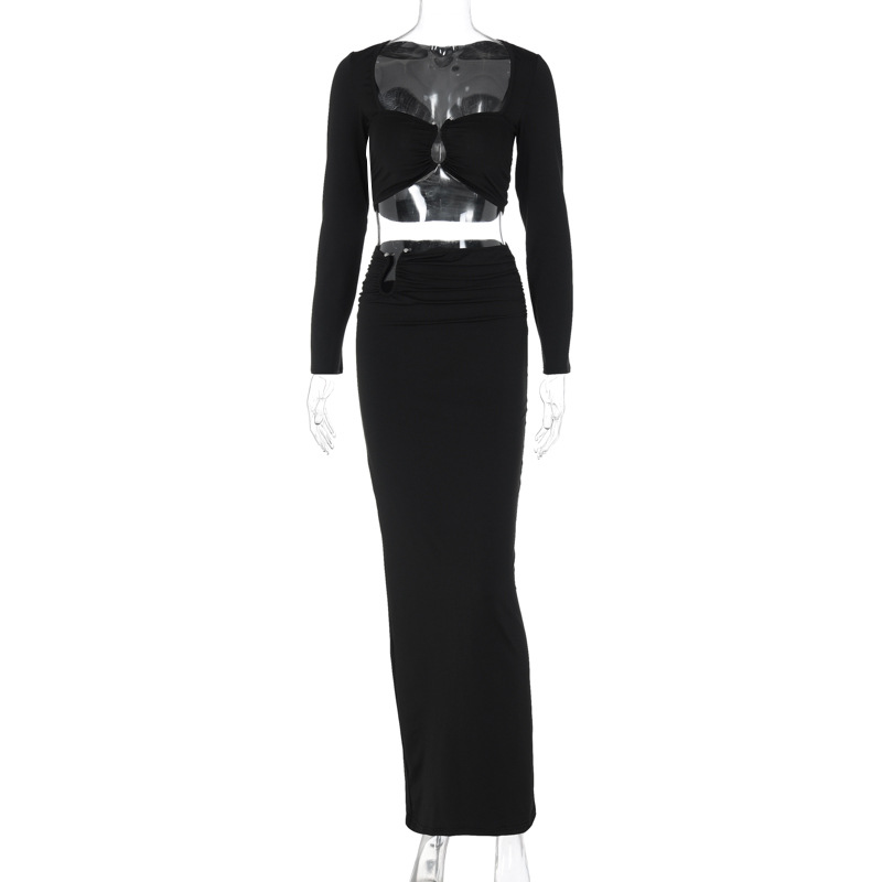 유럽과 미국의 국경 간 아마존 여성의 2024 년 여름 새로운 폭발성 섹시한 랩 가슴 긴 소매 후면 분할 긴 원피스 세트