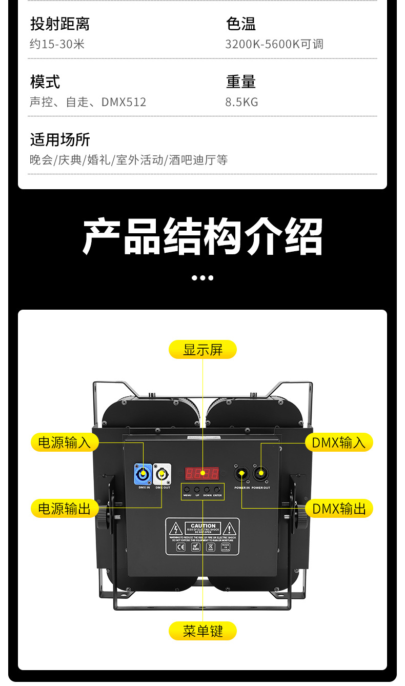 패튼 COB 네 눈 관객 조명 무대 LED 표면 조명 성능 자동 쇼 바 채우기 조명 무대 조명 장비