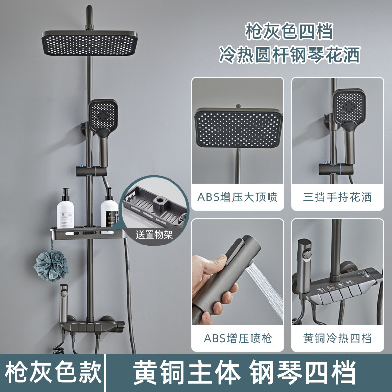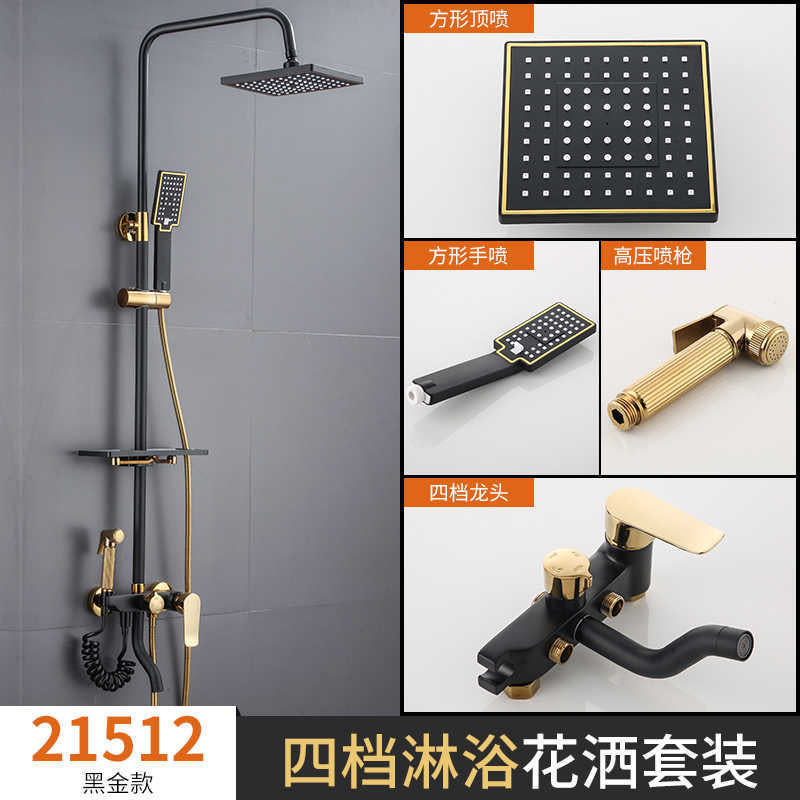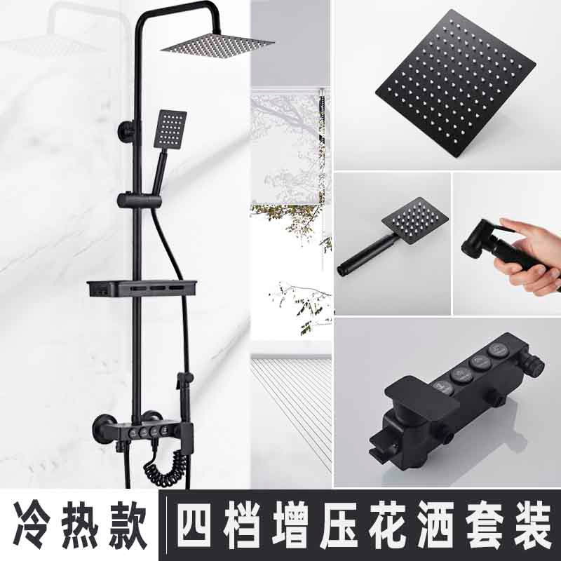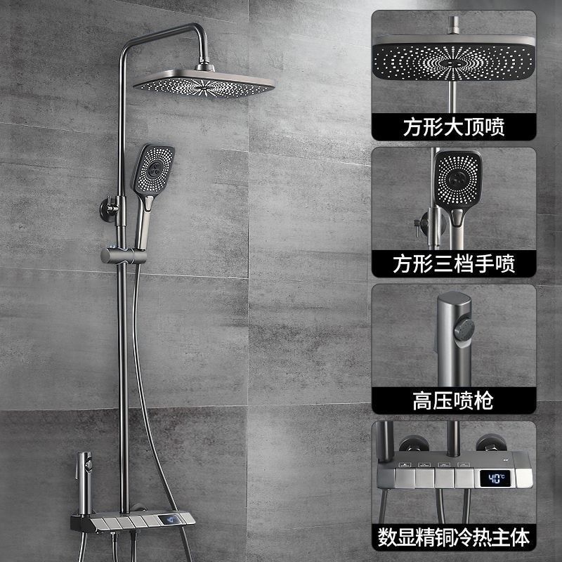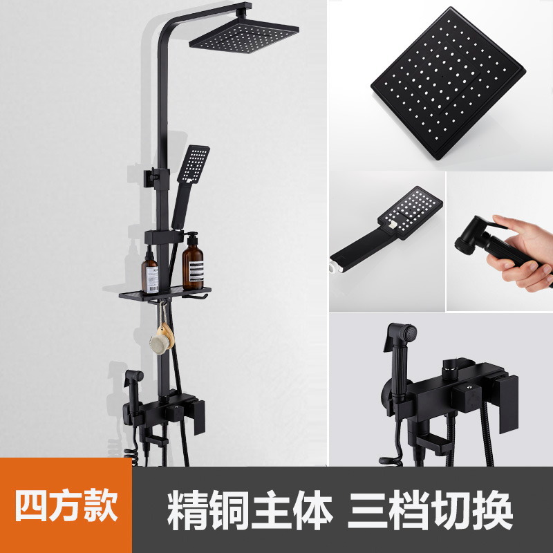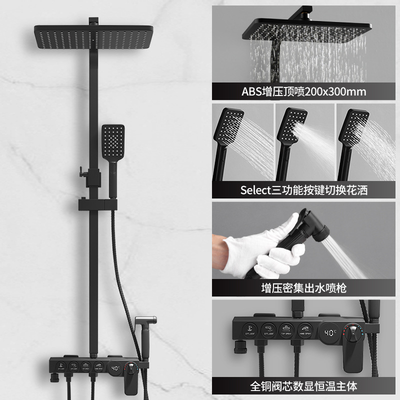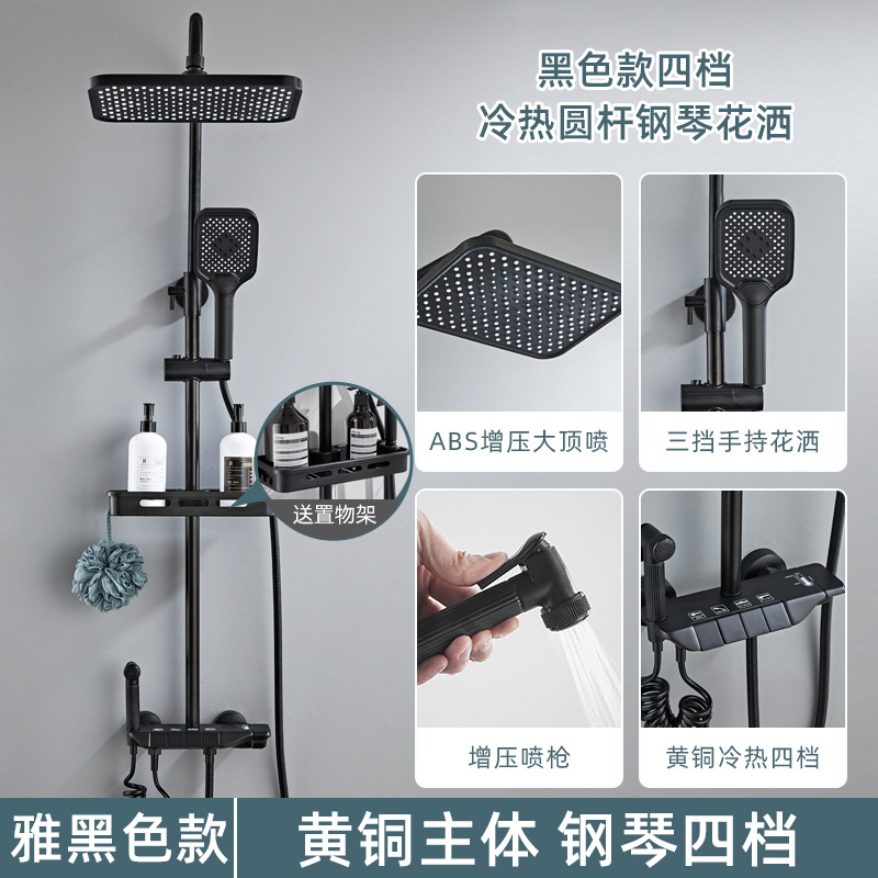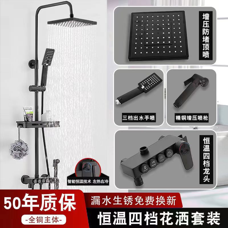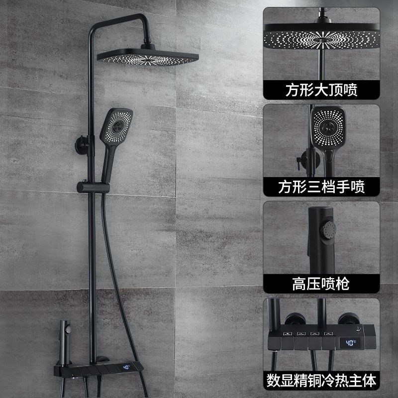 블랙 온도조절 샤워 세트, 순동 욕실 샤워기, 고급스러운 스타일의 샤워기
