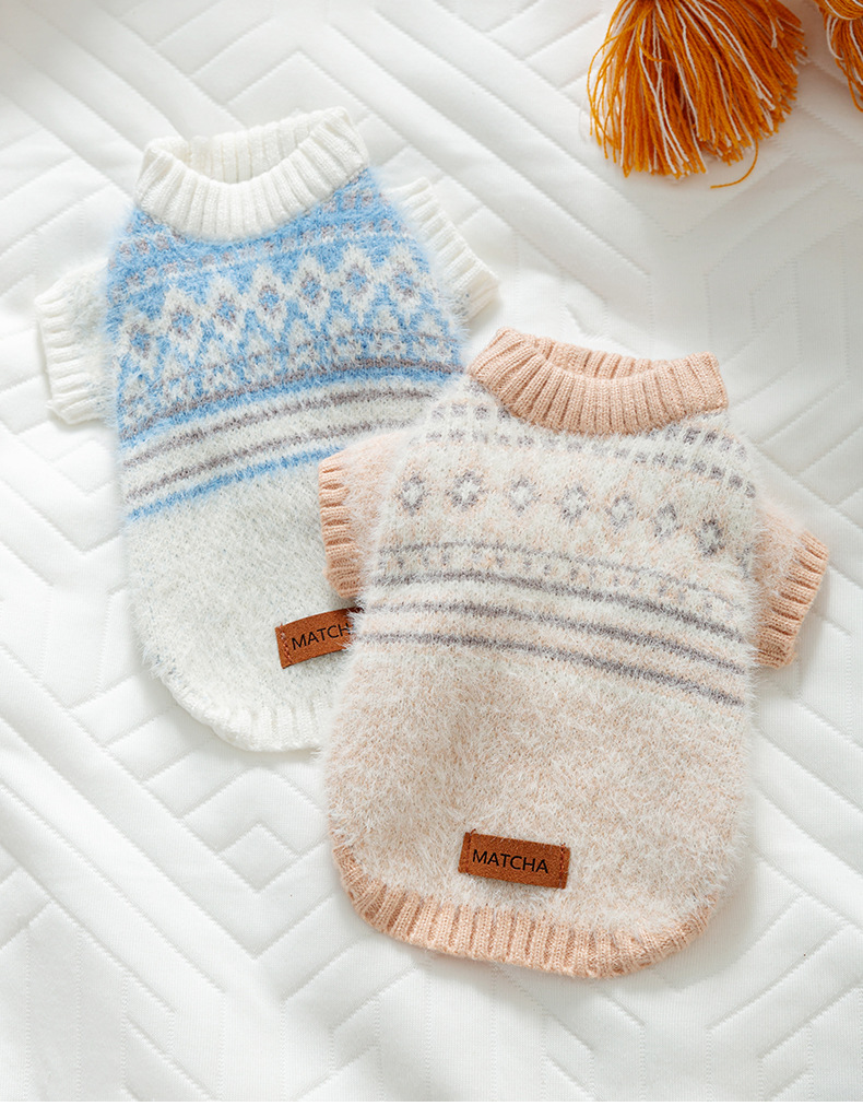 고양이 북유럽 스타일 능형 스웨터 두꺼운 강아지 두 다리 테디 중형 및 소형 개 따뜻한 옷 애완 동물 용품