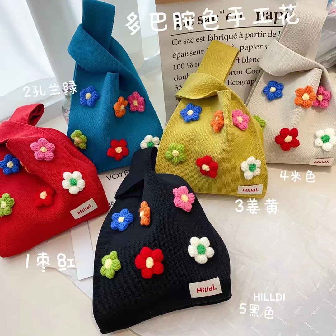 새로운 도파민 다채로운 수제 꽃 니트 토트 백 패션웨어 소녀의 양동이 점심 가방스토어 가기