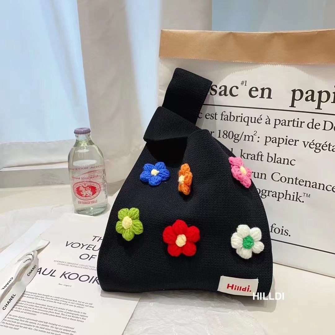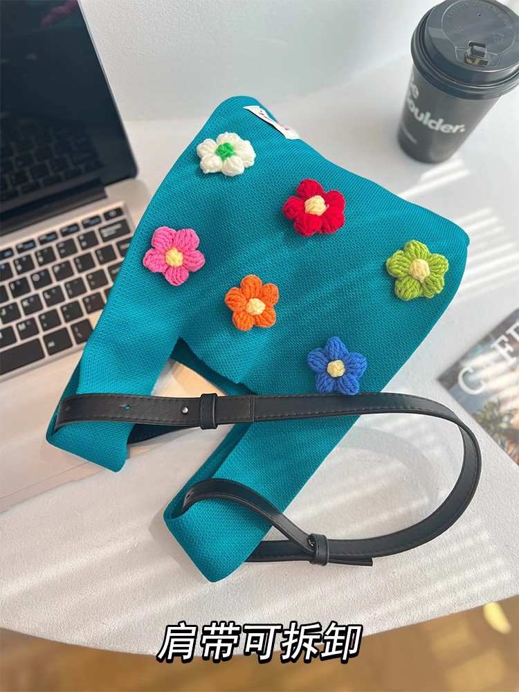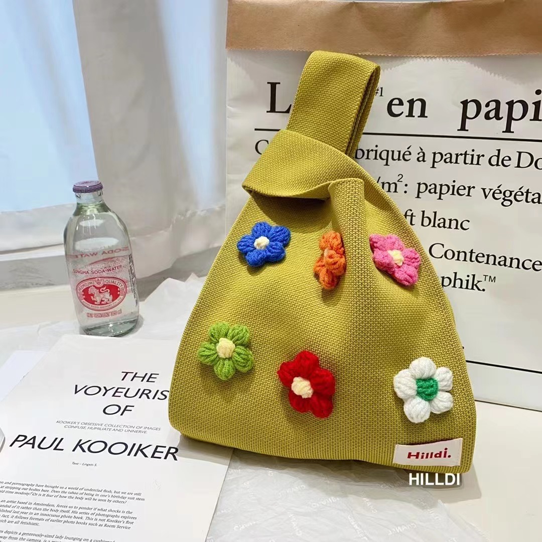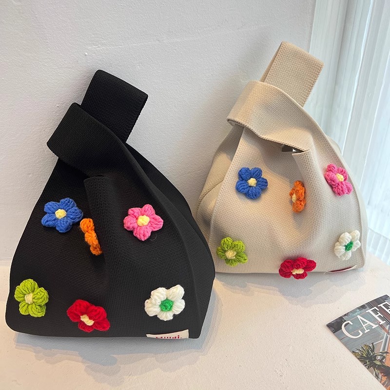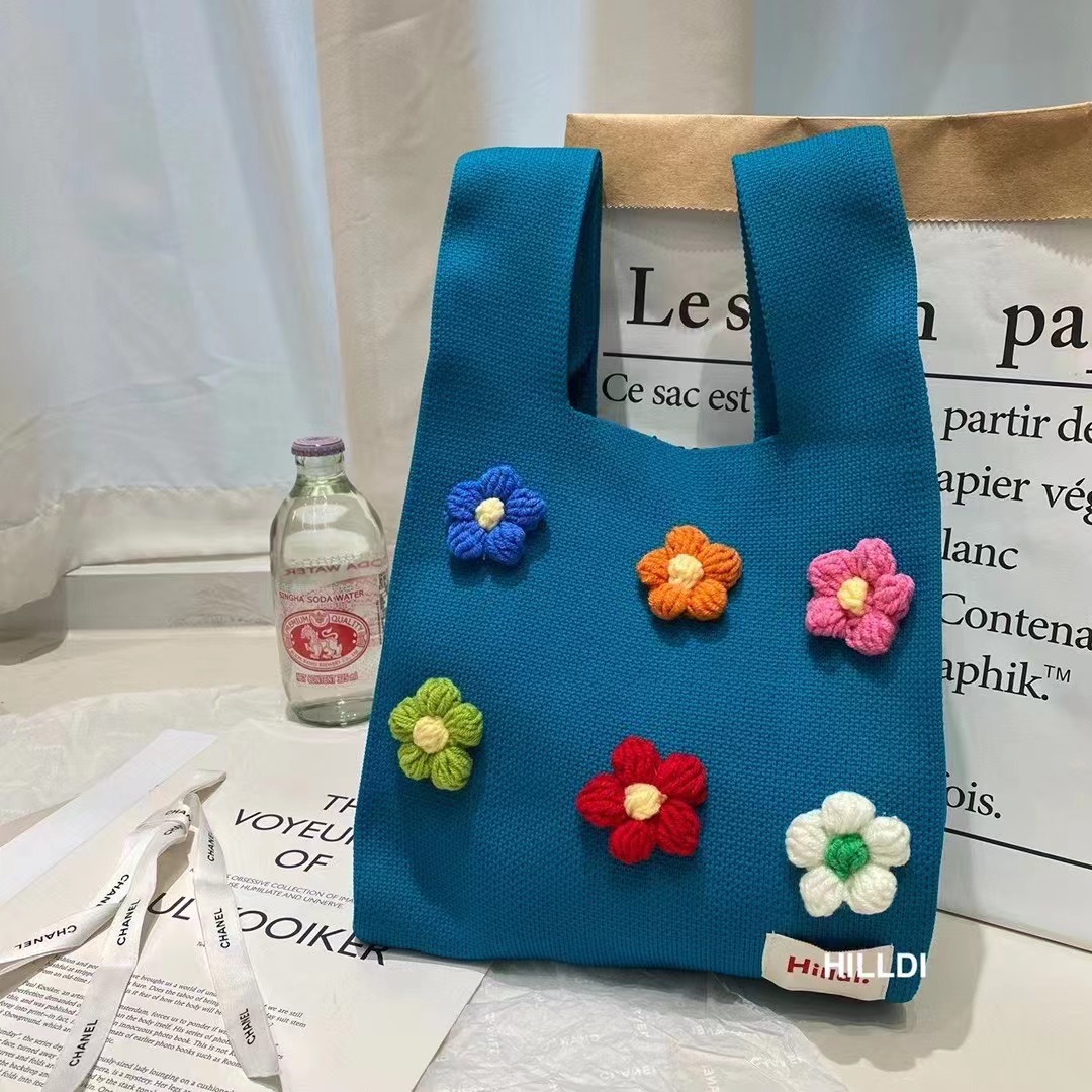 새로운 도파민 다채로운 수제 꽃 니트 토트 백 패션웨어 소녀의 양동이 점심 가방