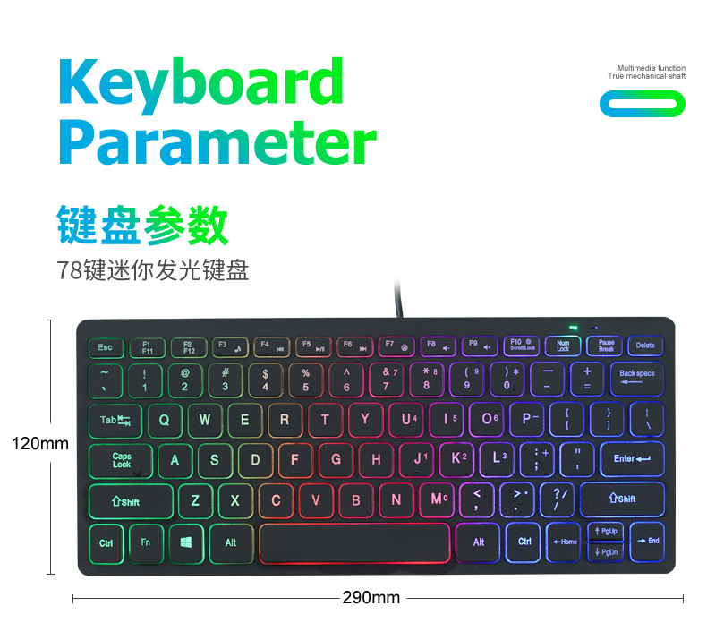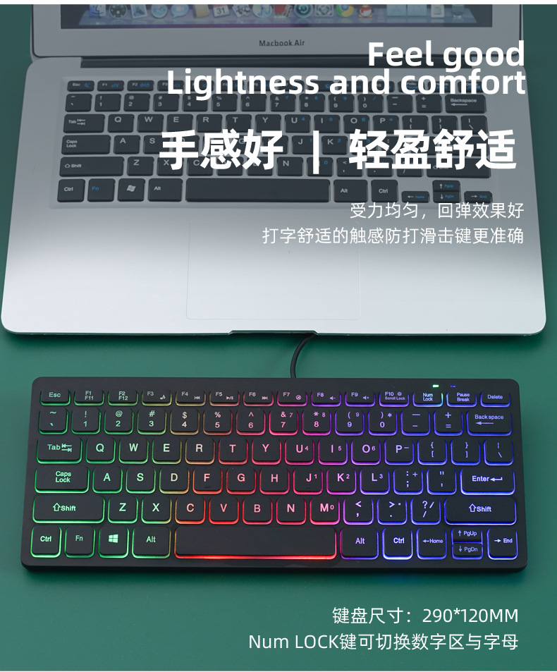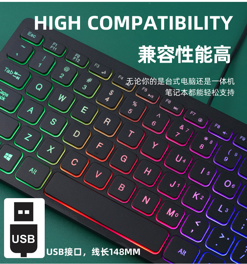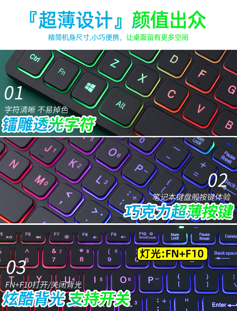 Yiqi 초콜릿 발광 백라이트 유선 키보드 미니 소형 스몰 사이즈 노트북 외부 키패드