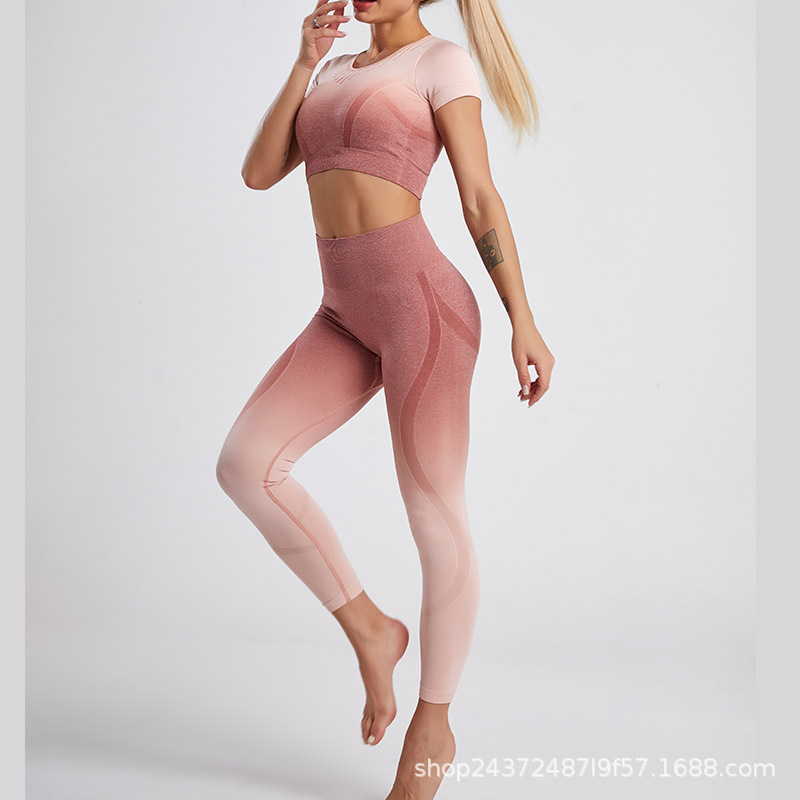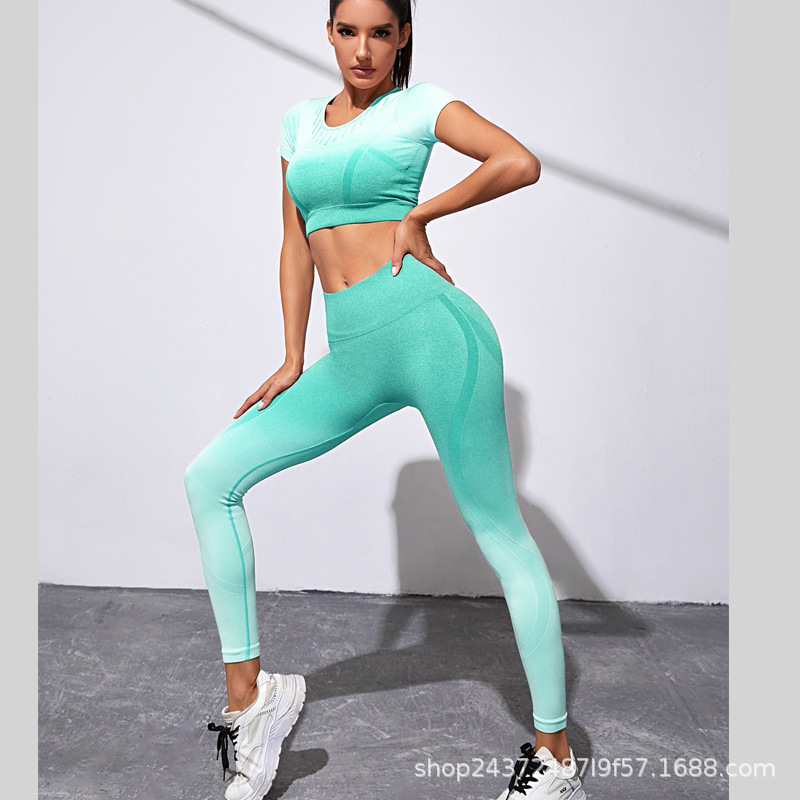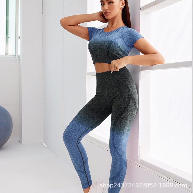 국경 간 유럽 및 미국 그라디언트 원활한 염색 요가 세트 세트 투피스 원활한 그라디언트 요가 세트 세트 고급 감각