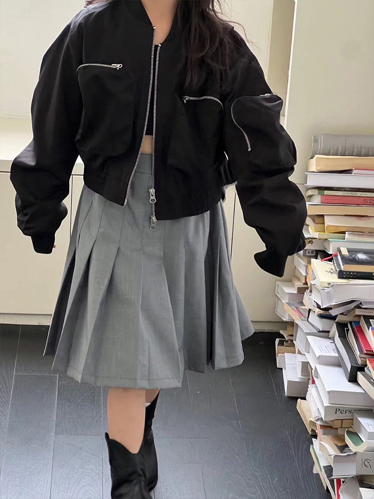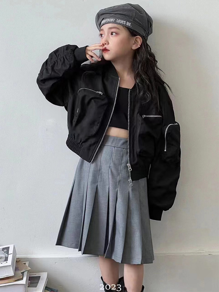 소녀의 주름 치마 콩 여동생 2023 가을 새로운 어린이 클래식 대학 스타일 JK 짧은 치마 큰 어린이 반 길이 스커트