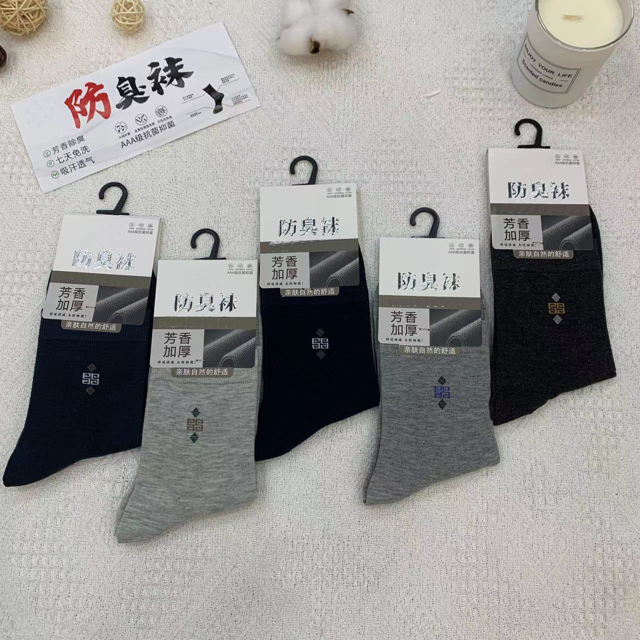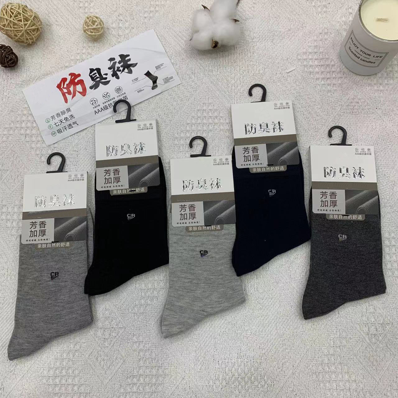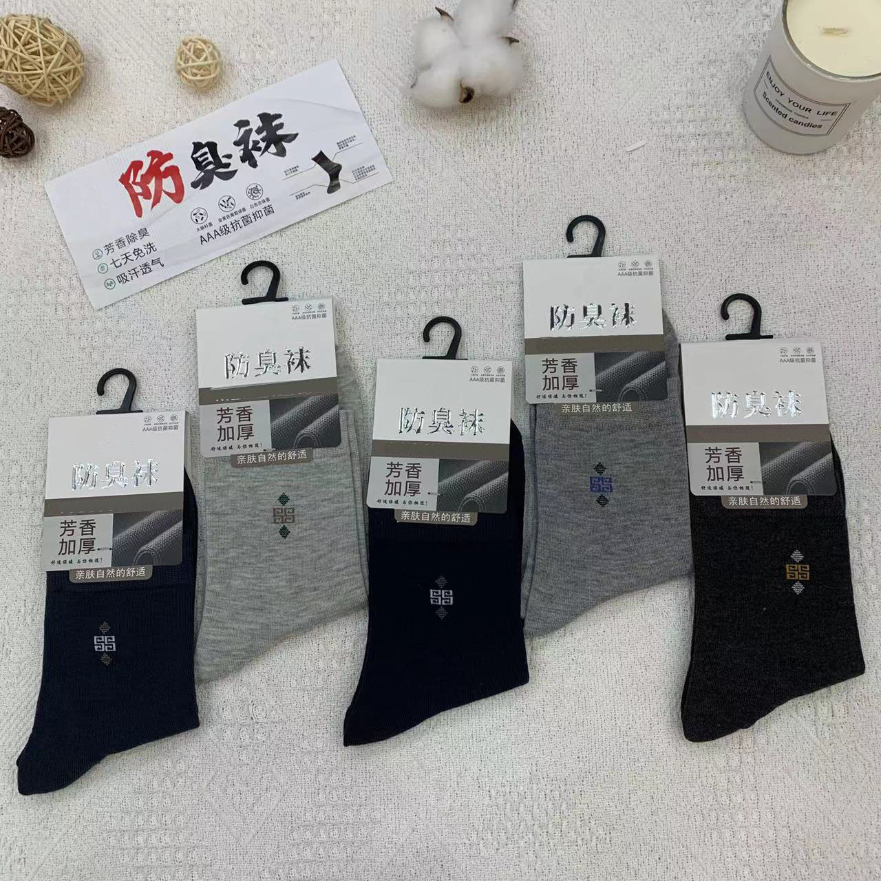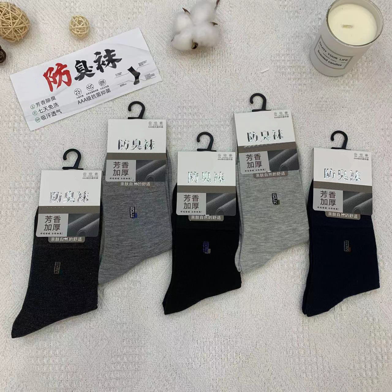 2023 가을 겨울 신상 여성 및 남성용 비즈니스 양말, 단색 두꺼운 탈취 양말, 깔끔한 표면, 심플한 스타일의 종아리 양말, 사계절 스타일