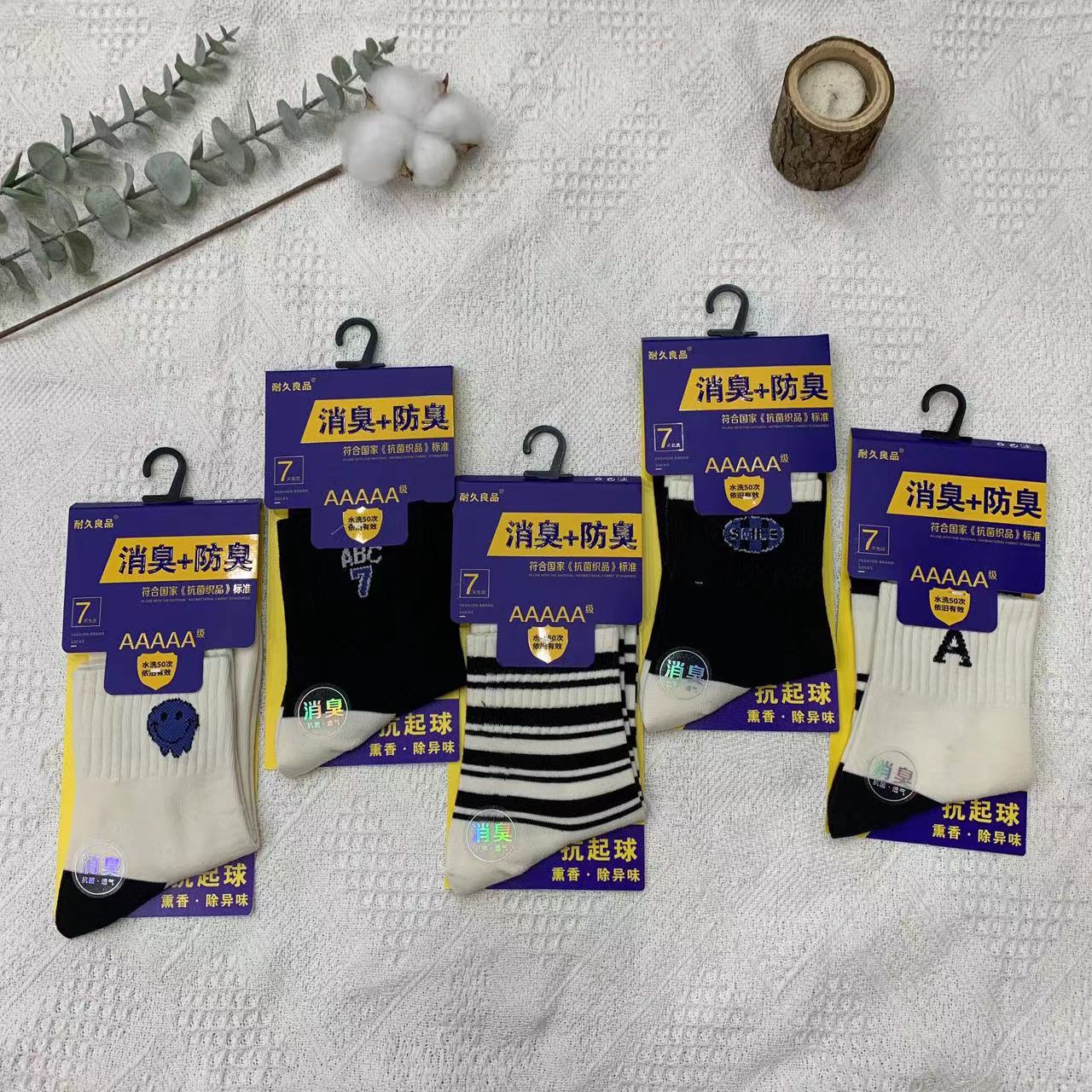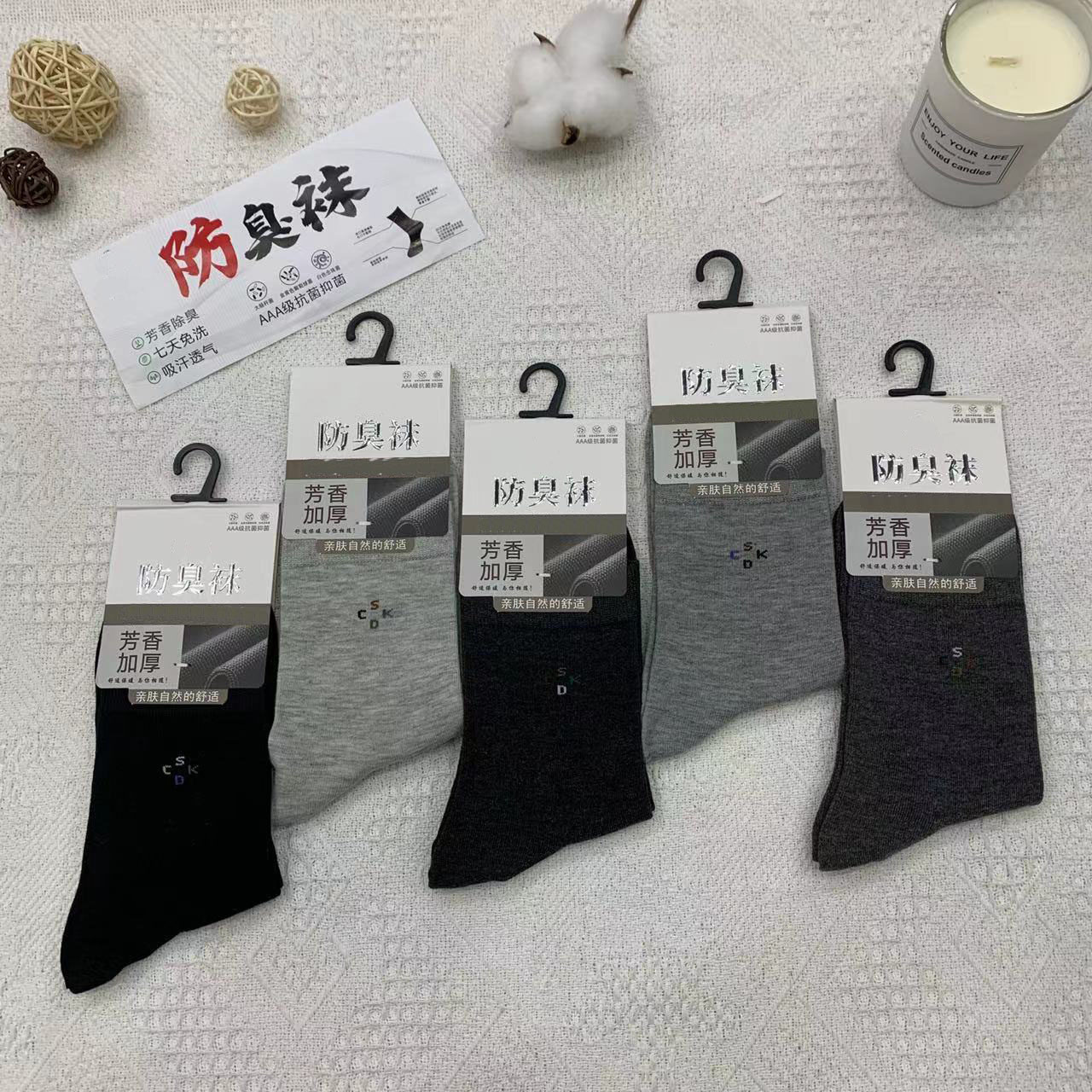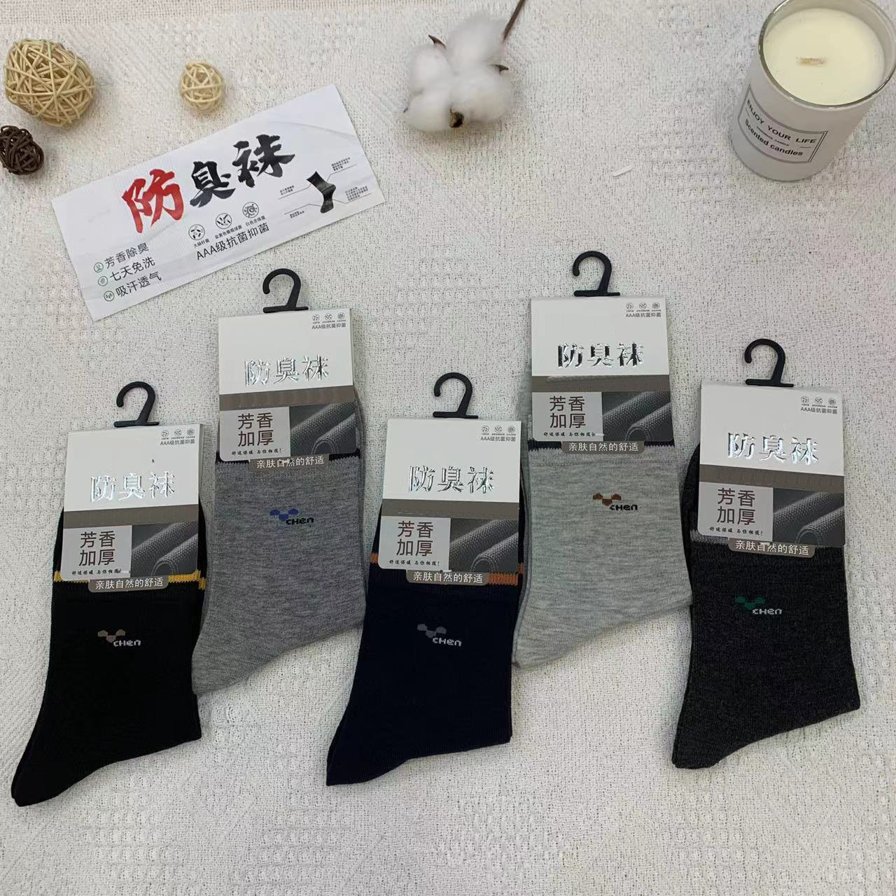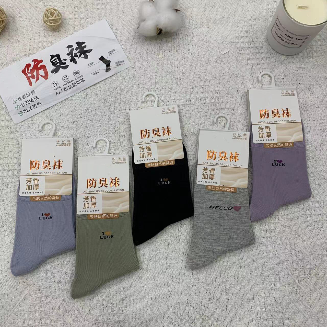 2023 가을 겨울 신상 여성 및 남성용 비즈니스 양말, 단색 두꺼운 탈취 양말, 깔끔한 표면, 심플한 스타일의 종아리 양말, 사계절 스타일