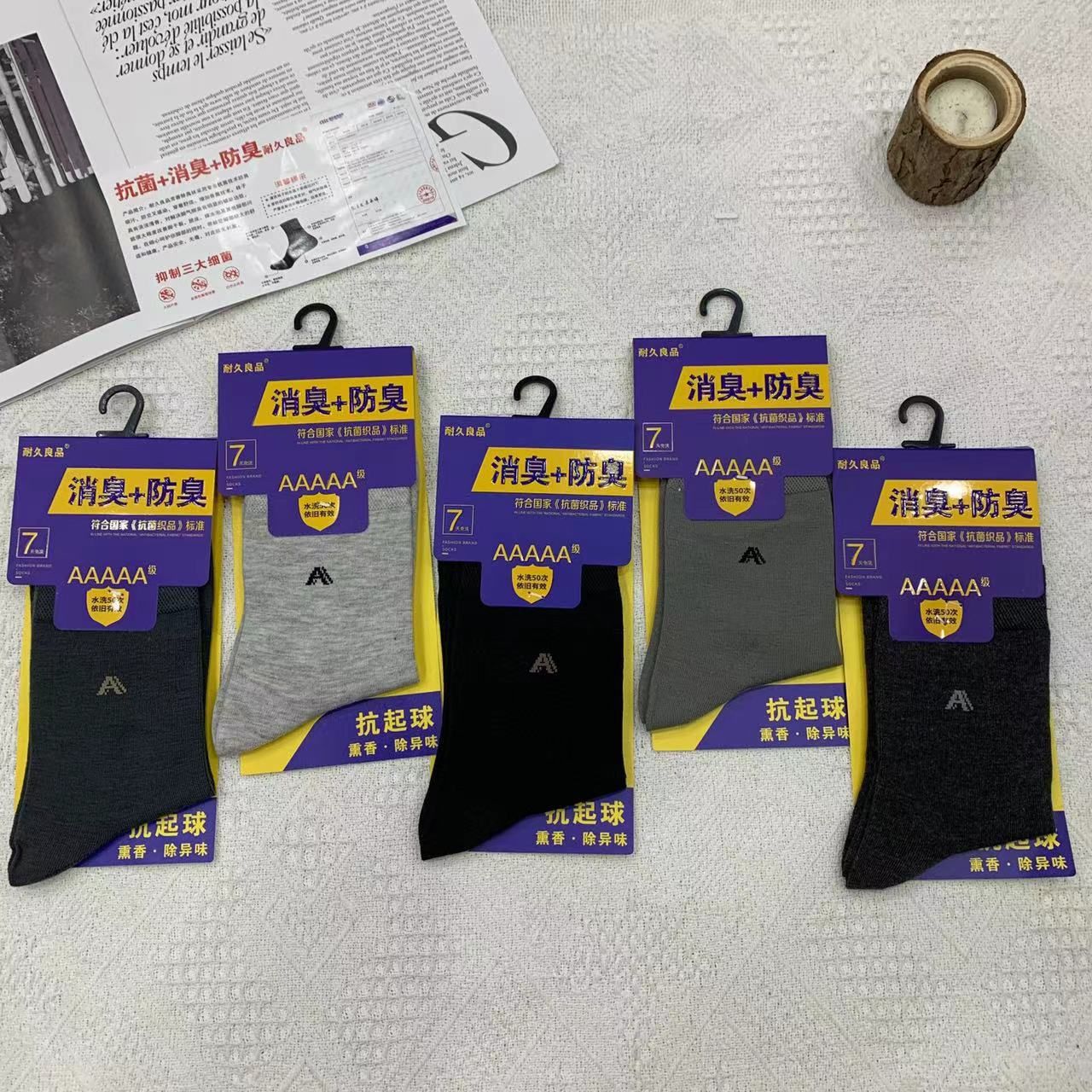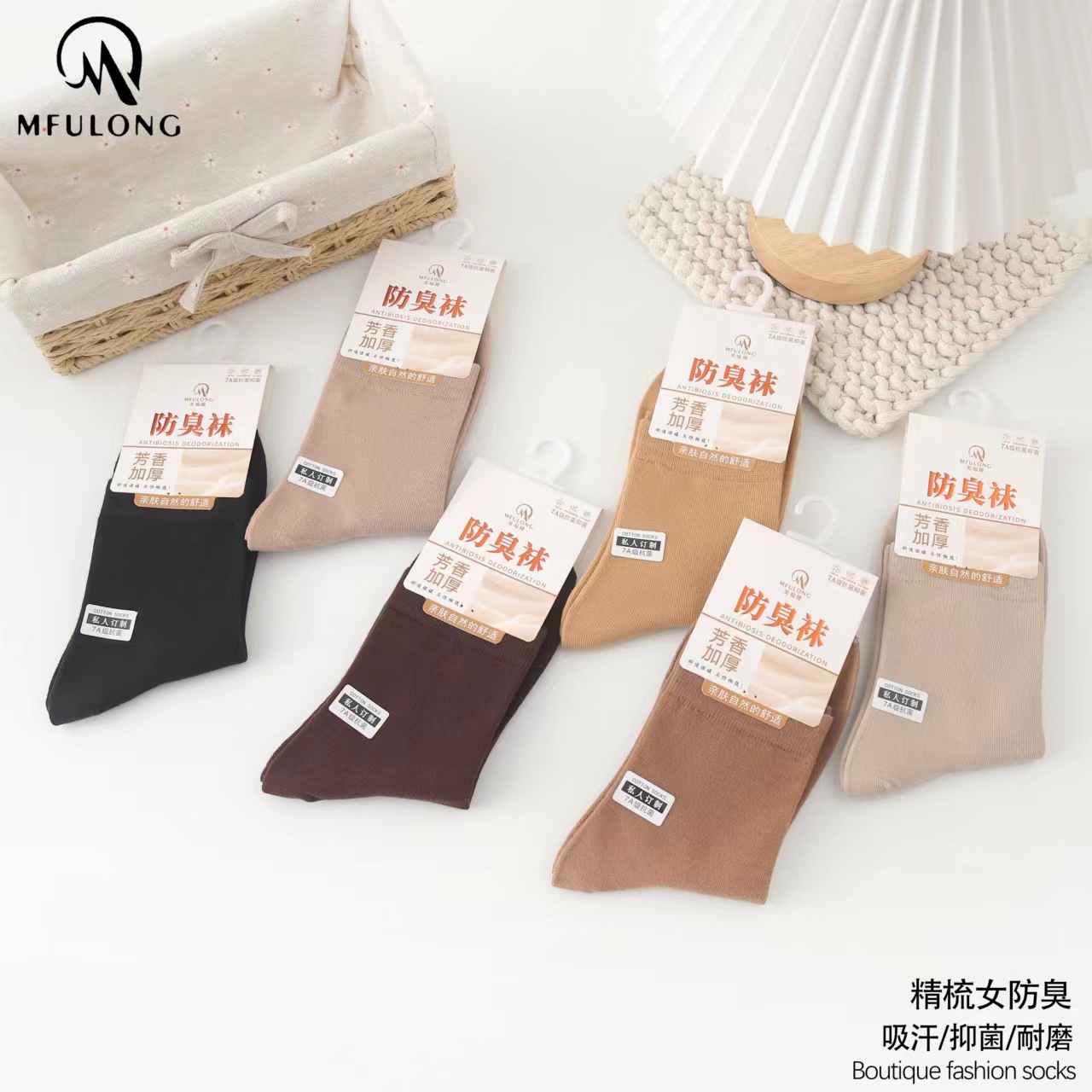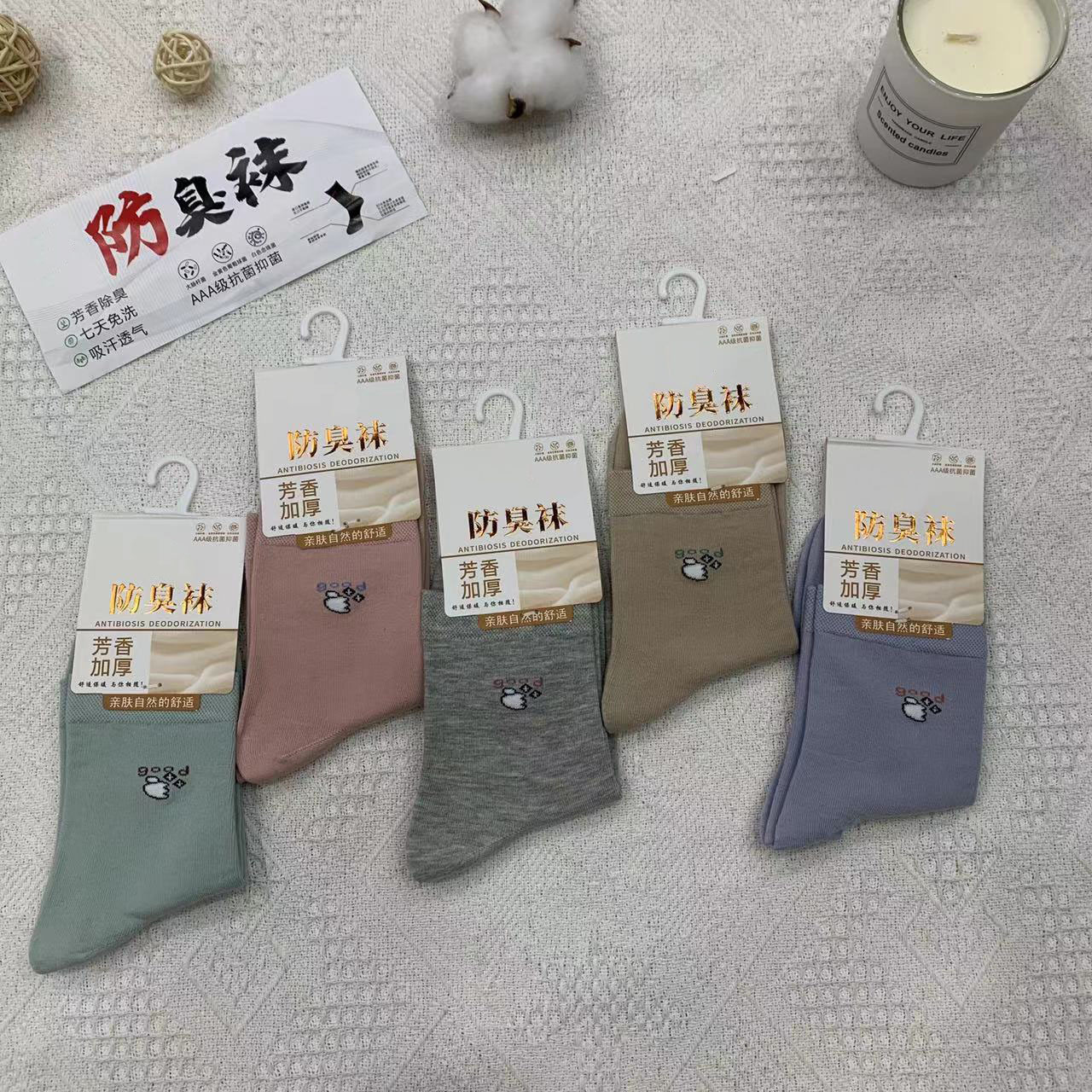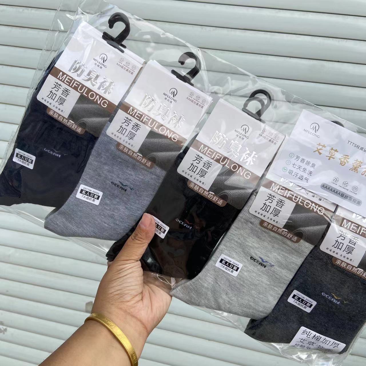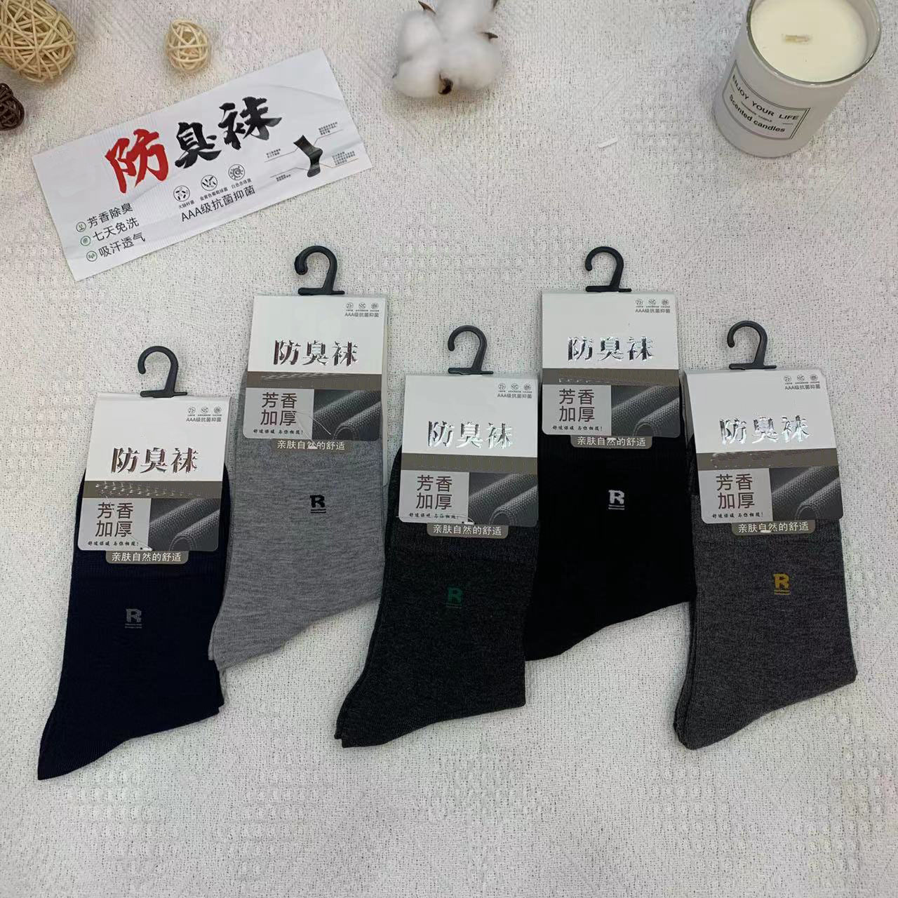 2023 가을 겨울 신상 여성 및 남성용 비즈니스 양말, 단색 두꺼운 탈취 양말, 깔끔한 표면, 심플한 스타일의 종아리 양말, 사계절 스타일