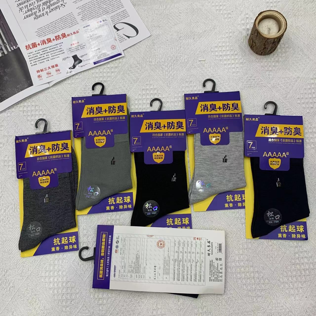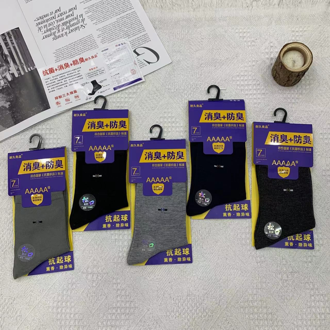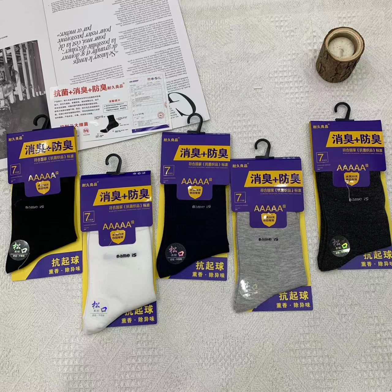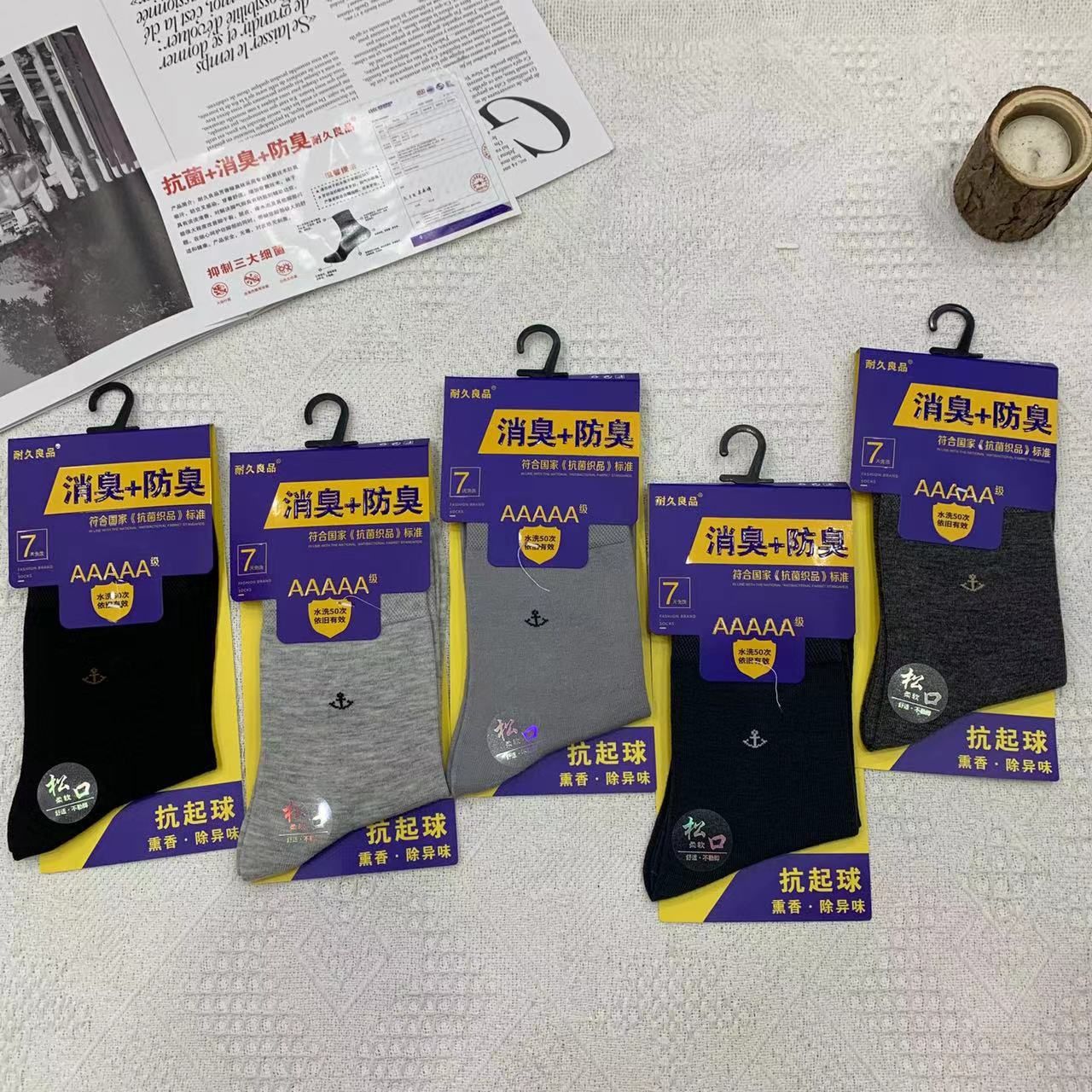 2023 가을 겨울 신상 여성 및 남성용 비즈니스 양말, 단색 두꺼운 탈취 양말, 깔끔한 표면, 심플한 스타일의 종아리 양말, 사계절 스타일