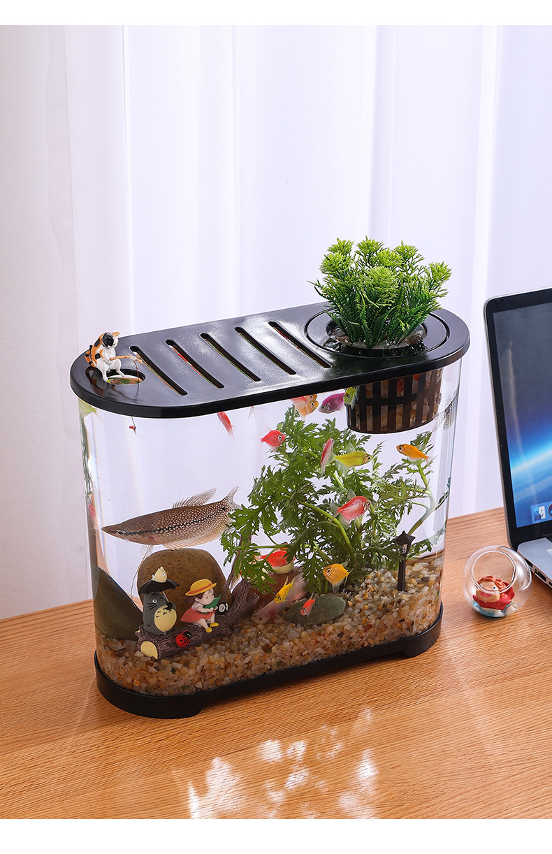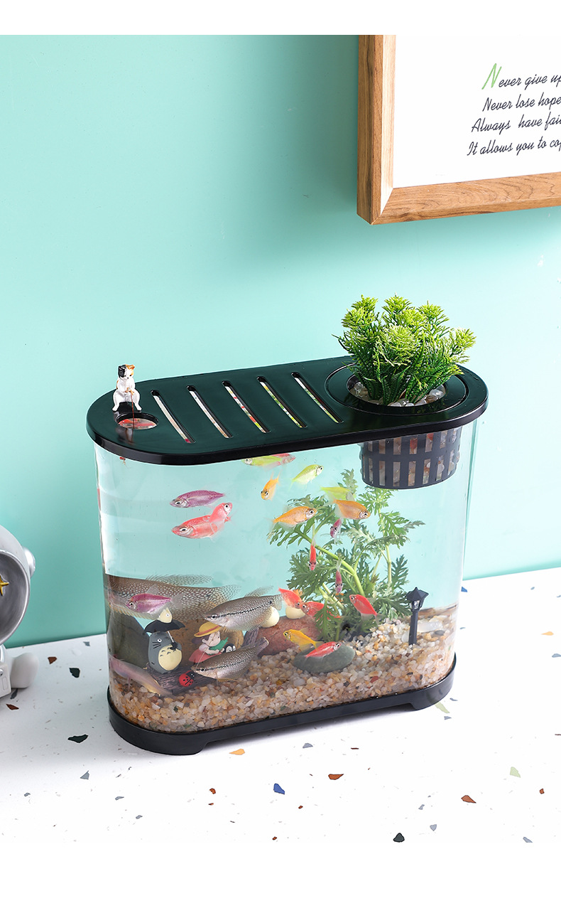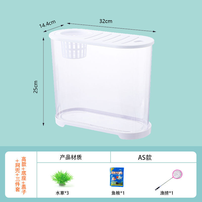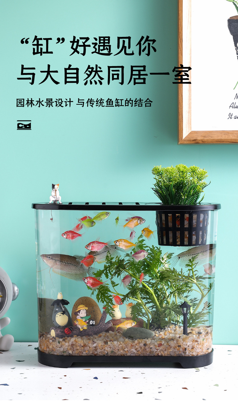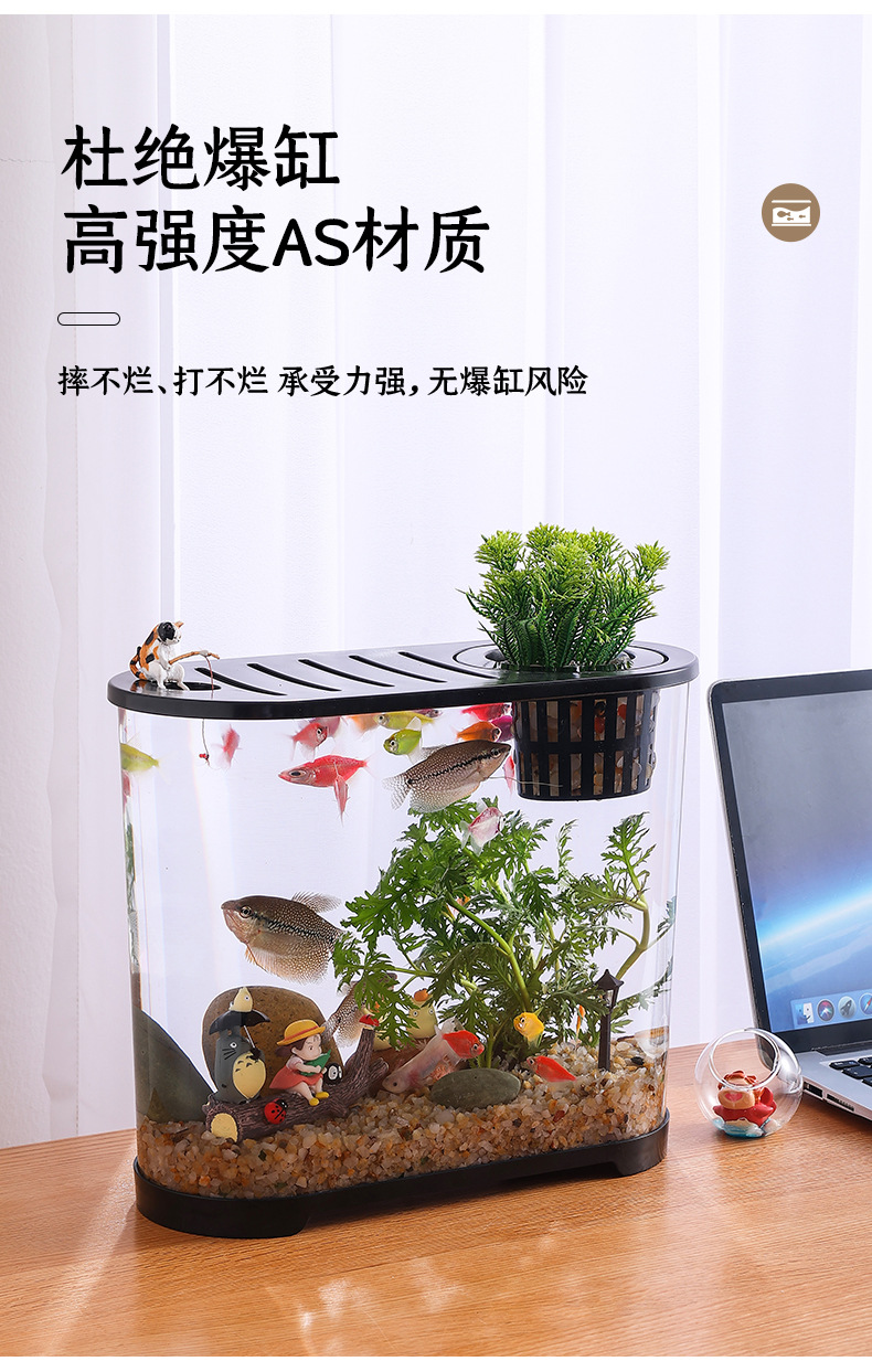 데스크탑 투명 모조 유리 가정용 플라스틱 어항 중소형 거실 발코니 조경 금붕어 탱크 수족관 새로운 스타일