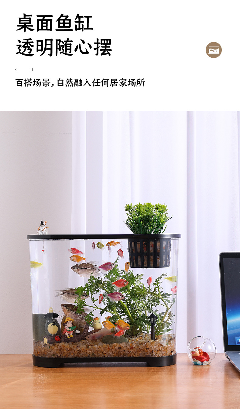 데스크탑 투명 모조 유리 가정용 플라스틱 어항 중소형 거실 발코니 조경 금붕어 탱크 수족관 새로운 스타일스토어 가기