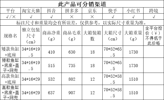 • 검은 짧은 어항 + 받침대 + 뚜껑 + 그물 주머니