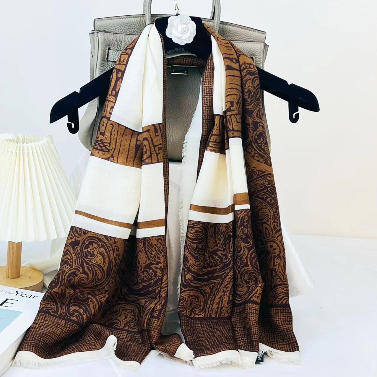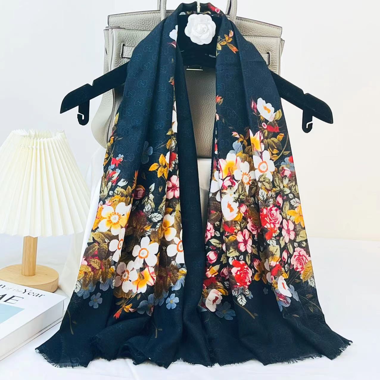 퍼플 포춘 트리 대형 스퀘어 스카프 독특한 대비 색상 꽃과 동물 프린트 숄 모조 울 실크 디자인 감각스토어 가기