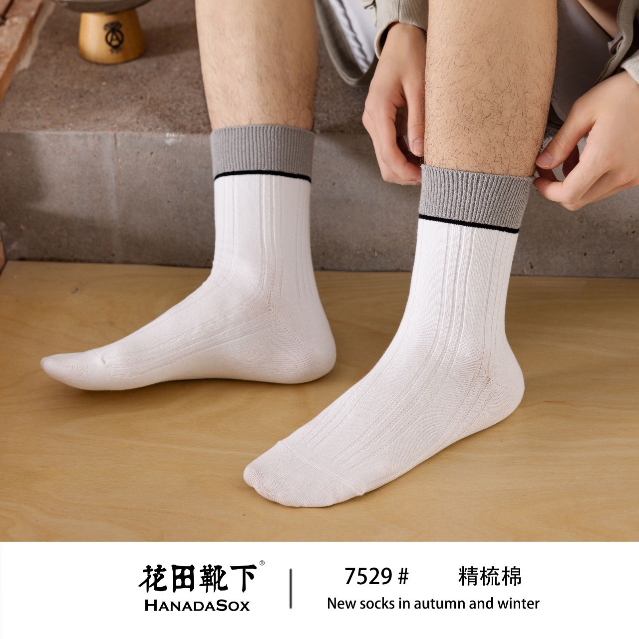 정품 새로운 가을과 겨울 꽃밭 부츠 남성용 긴 스테이플 코튼 캐주얼 코튼 양말 편안한 땀 흡수 통기성 유행