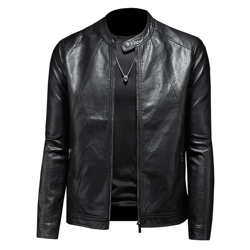 봄과 가을 새로운 남성 수직 칼라 오토바이 가죽 자켓 잘 생긴 슬림 핏 유행 남성 가죽 자켓 7122스토어 가기