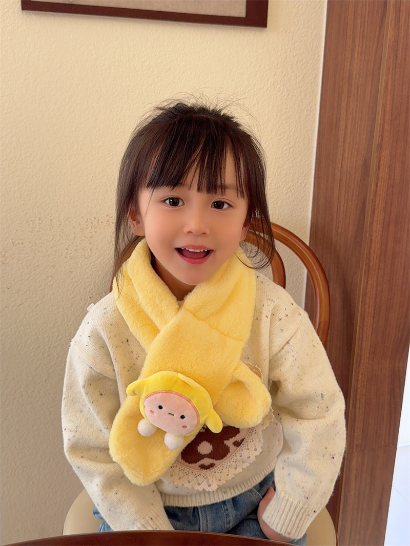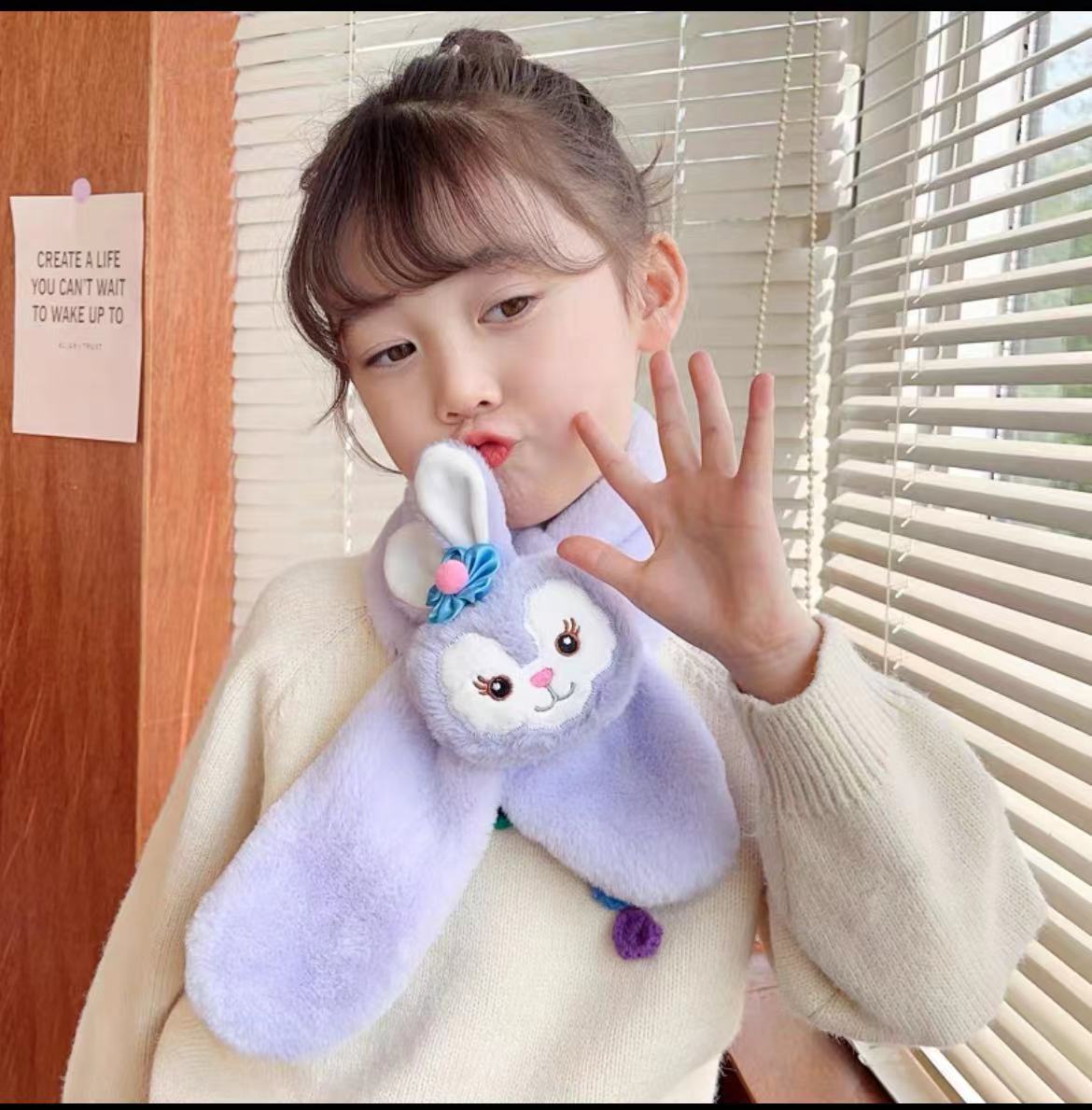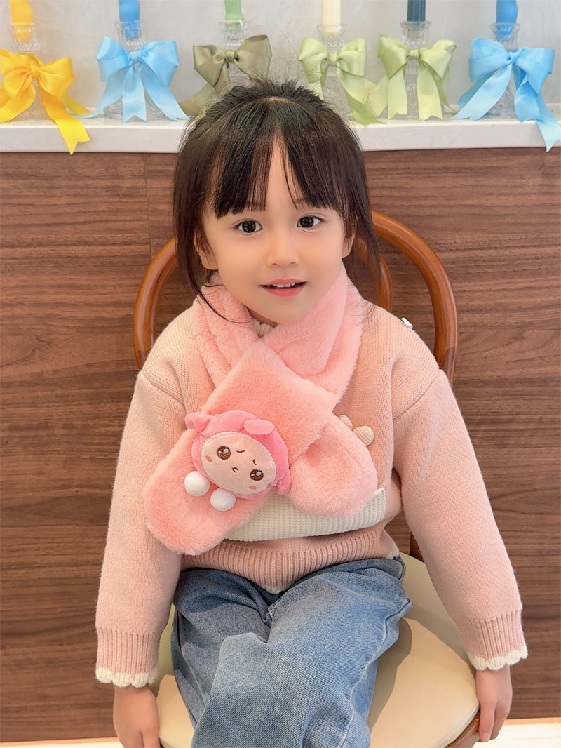 새로운 만화 스타일 2025 귀여운 인조 토끼털 어린이 스카프 남녀공용 겨울 두꺼운 플러시 목도리 아기 목 보호대스토어 가기