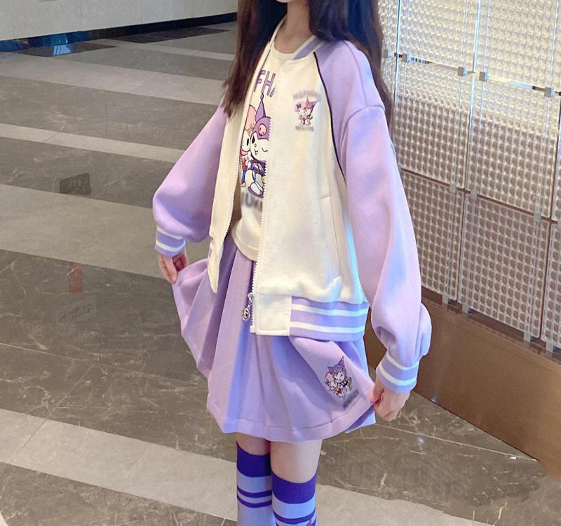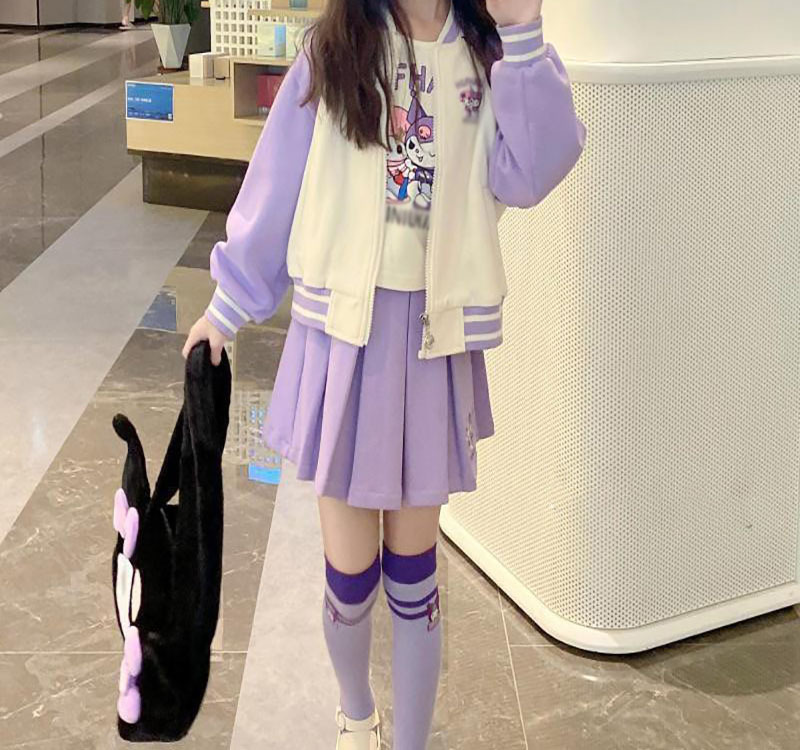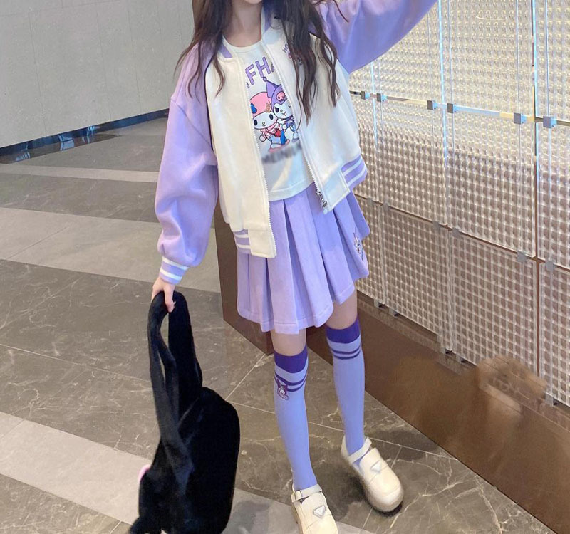 • 보라색 쓰리피스 슈트 (티셔츠+재킷+스커트)