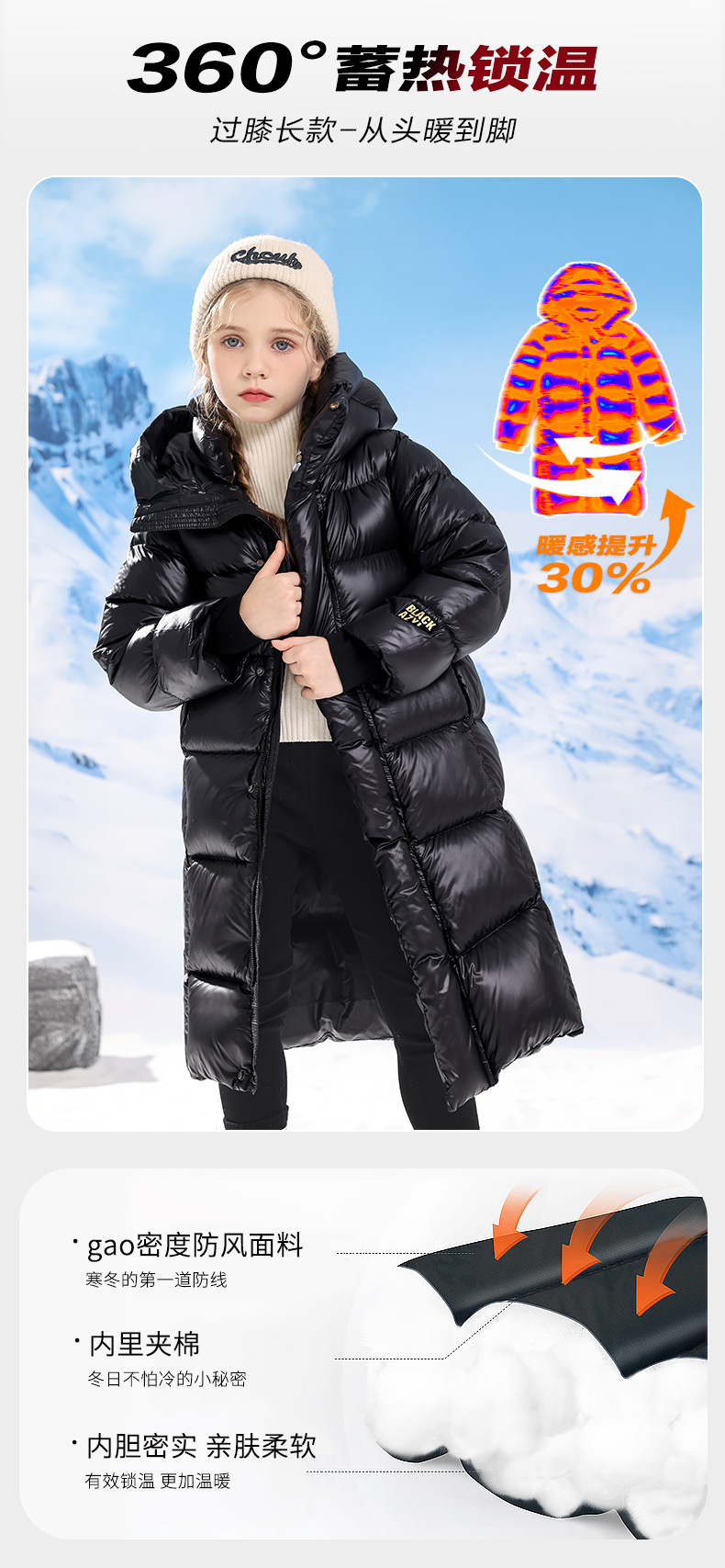 대외 무역 안티 시즌 새로운 어린이 롱 블랙 골드 패딩 다운 코튼 패딩 재킷 겨울 무릎 높이 작은 화산 코튼 패딩 재킷 소년과 소녀를위한스토어 가기