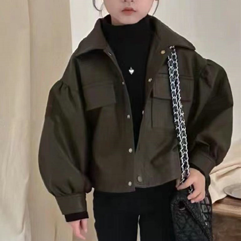 여아 코트 싱글 브레스트 부드러운 가죽 패션 가죽 자켓 가죽 의류 23 가을과 겨울 새로운 대외 무역 아동 의류