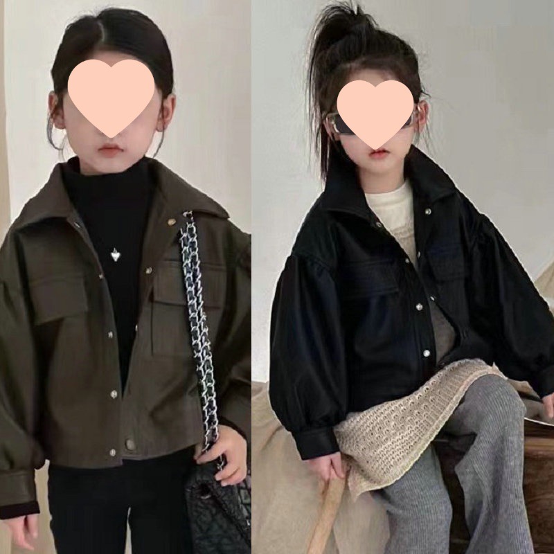 여아 코트 싱글 브레스트 부드러운 가죽 패션 가죽 자켓 가죽 의류 23 가을과 겨울 새로운 대외 무역 아동 의류스토어 가기