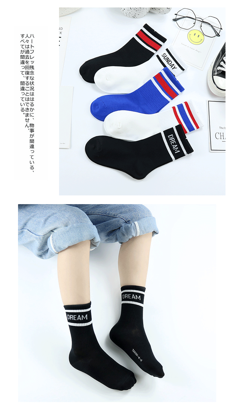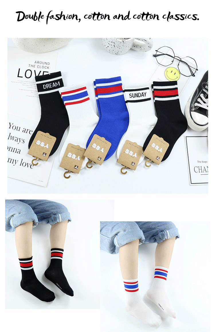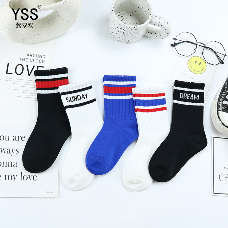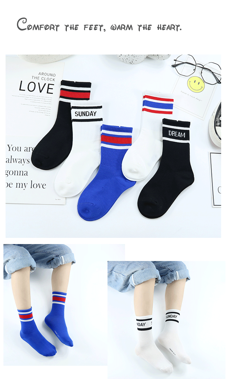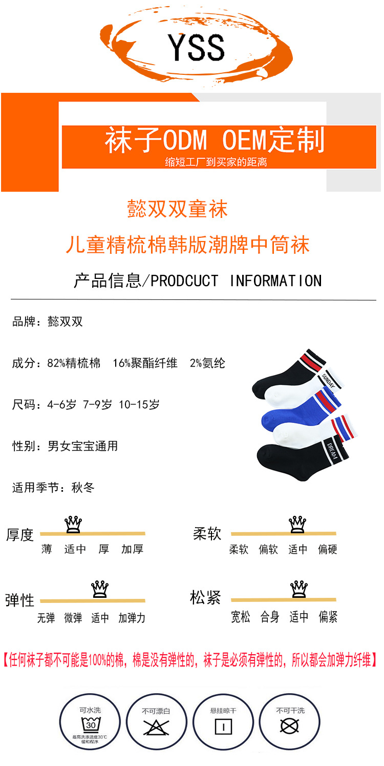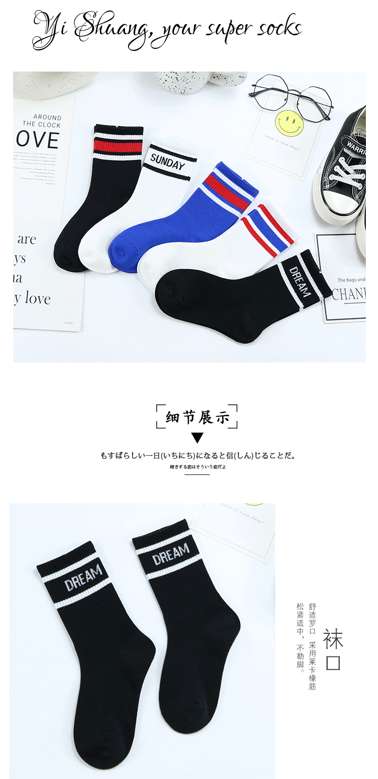 Yi Pair 어린이 양말 가을과 겨울 새로운 한국식 편지 하이 스타킹 빗질 된 면 큰 어린이 하이 웨이스트 스포츠 양말 뼈없는스토어 가기