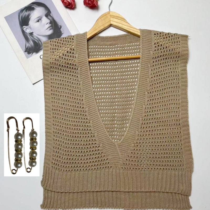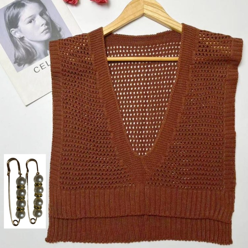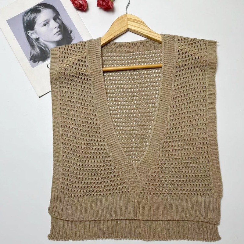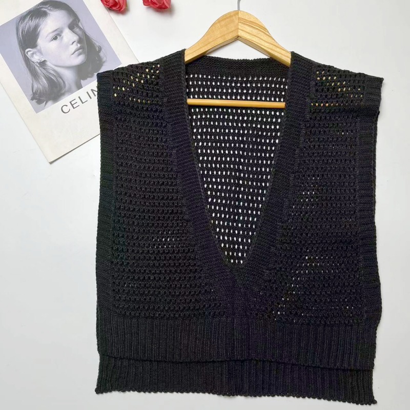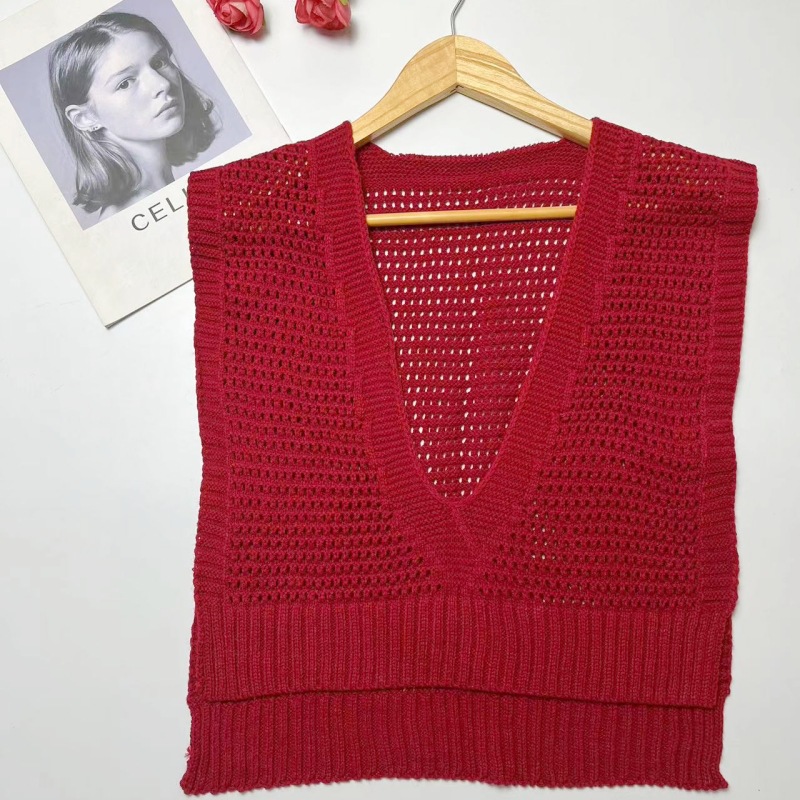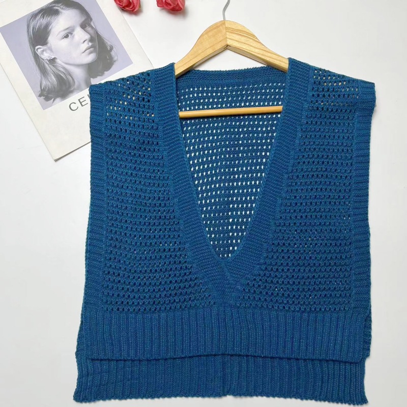 새로운 가을과 겨울 니트 울 중공 조끼 조끼 여자의 단색 인터넷 인기있는 같은 스타일 풀오버 에어컨 따뜻한 숄스토어 가기