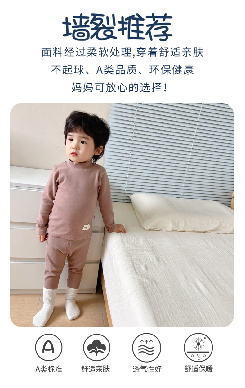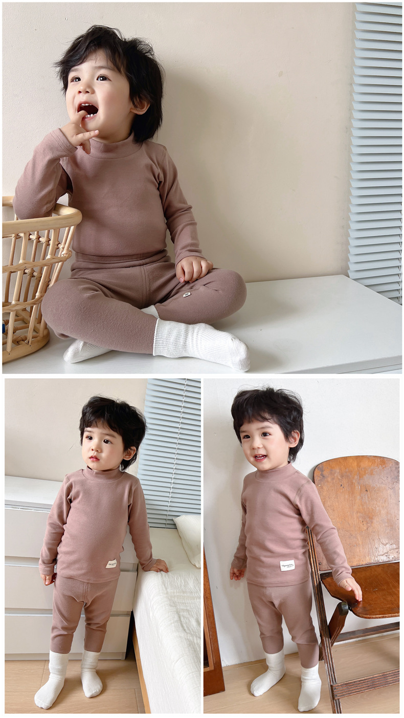 어린이 가을 옷 가을 바지 소년 소녀 따뜻한 세미 하이 칼라 속옷 아기의 순면 잠옷 가을과 겨울 가정 의류 세트스토어 가기