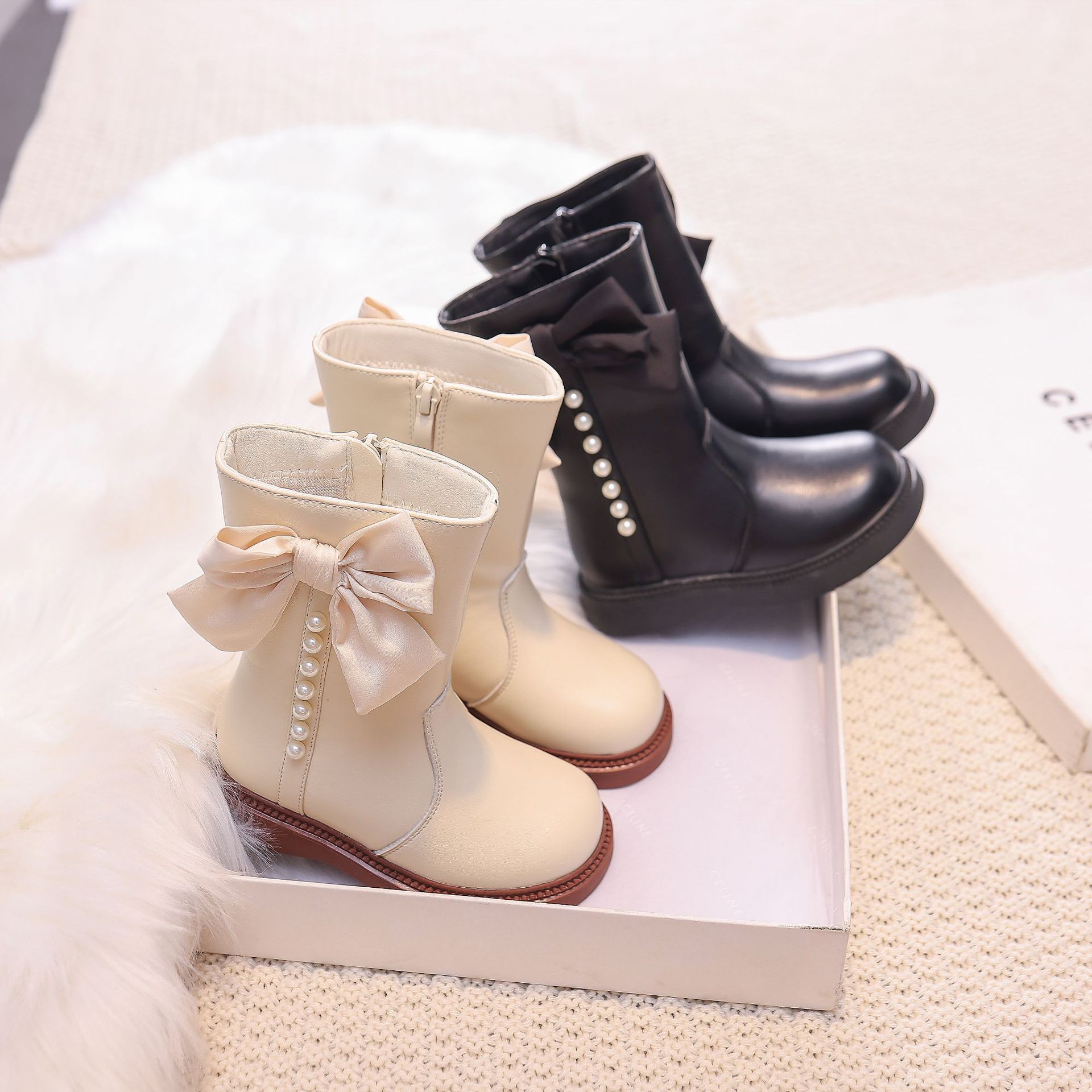 리틀베어 2025 신상 아동 공주 부츠 가을 겨울용 아동 중간 길이 부츠 여아 부츠 플러스 벨벳 여아 부츠