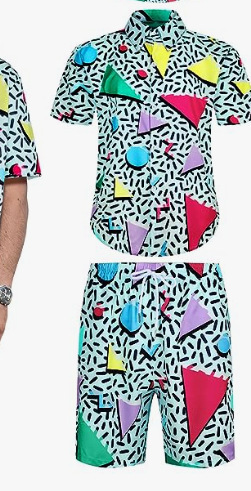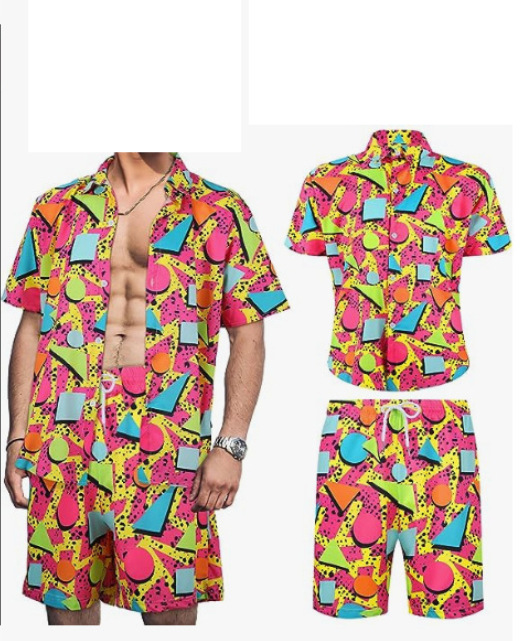 2023 AliExpress 새로운 남성 반팔 셔츠 유럽과 미국 패션 인쇄 캐주얼 세트