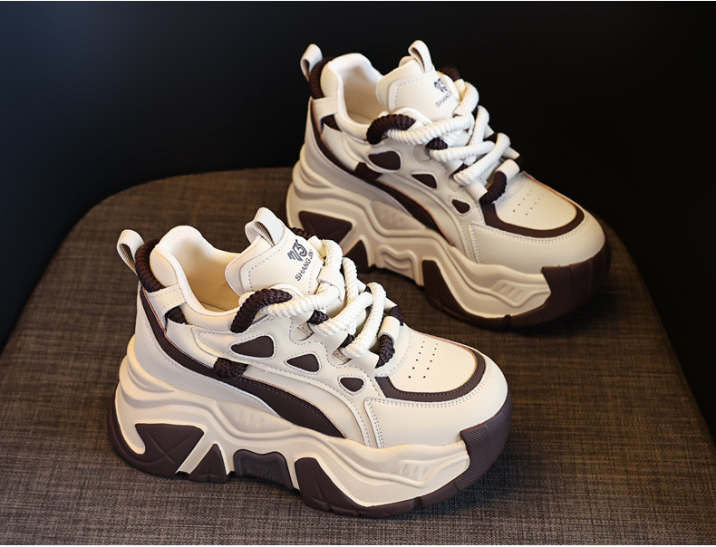 SJN0576-6 머핀 두꺼운 밑창 토레 신발 여성 가을 2023 새로운 라운드 발가락 레이스 업 여성 신발 모든 매치