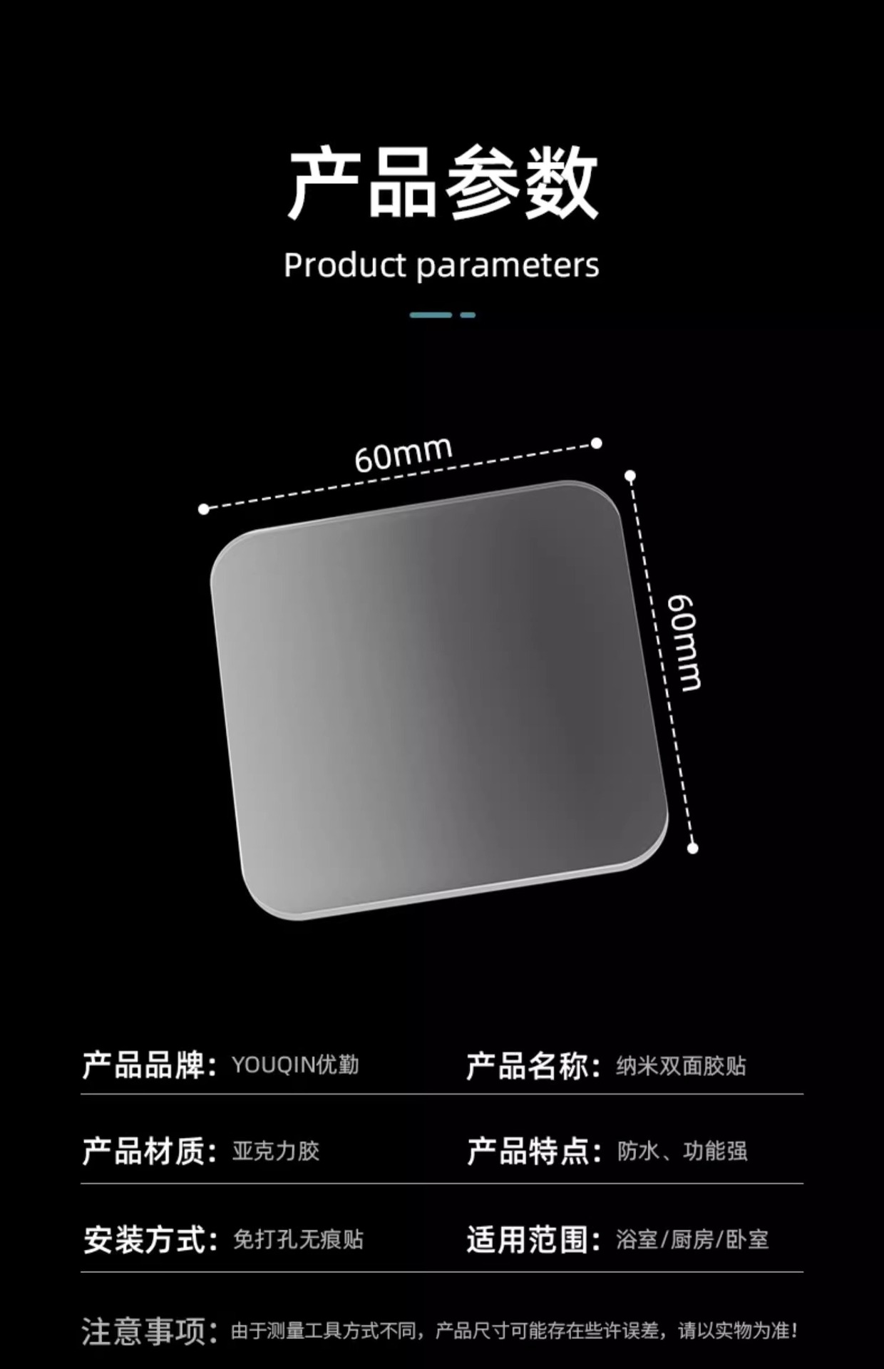 • [두꺼운-5 개] 강력한 양면 이음매없는 나노 접착제 [6cm * 6cm]