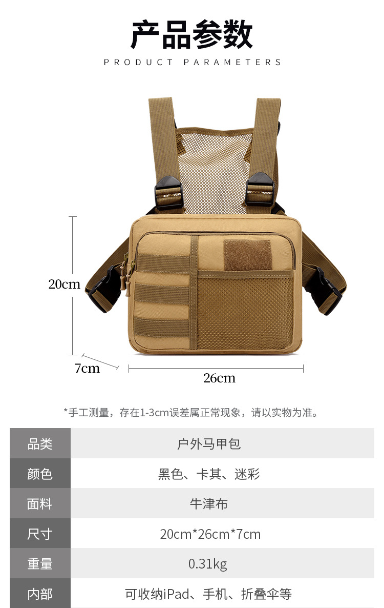 가을 겨울 단색 스포츠 전술 가슴 가방 다용도 트렌디 캐주얼 카모플라주 기능성 백팩 심플 옥스포드 조끼 가방스토어 가기