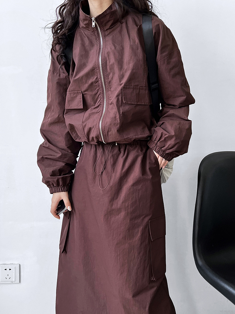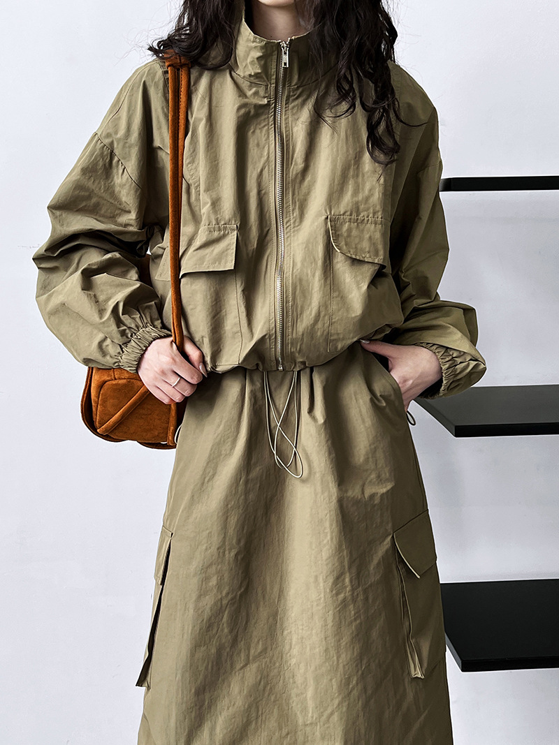 럭시 아메리칸 쇼트 재킷 코트 + 드로스트링 스커트 투피스 아웃도어 스포츠 툴링 세트 여성 2317스토어 가기