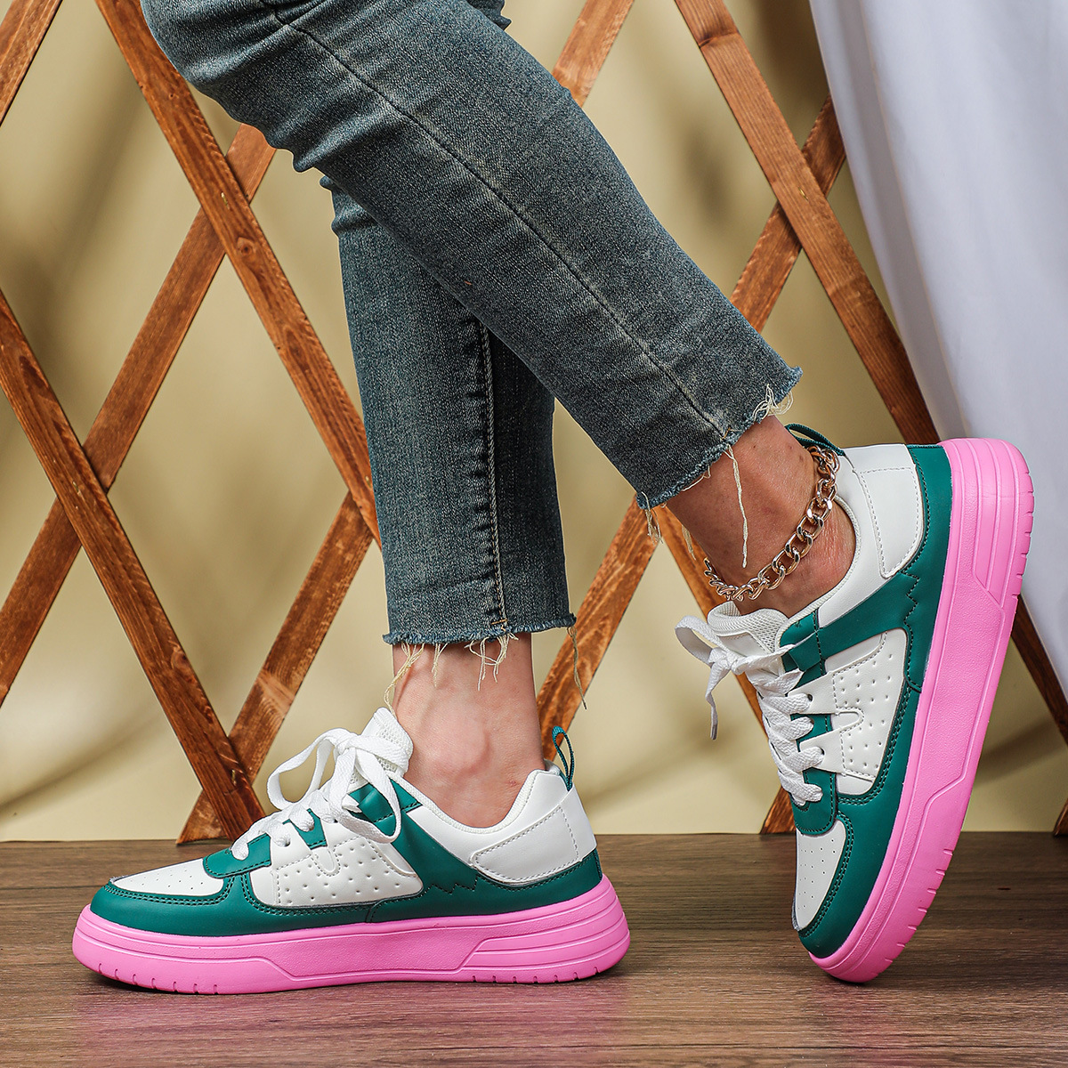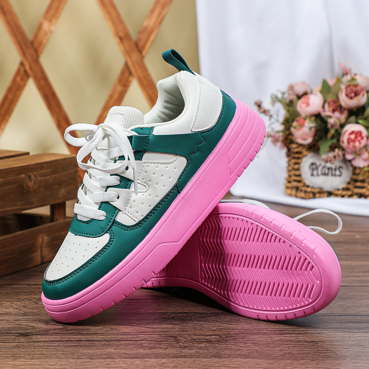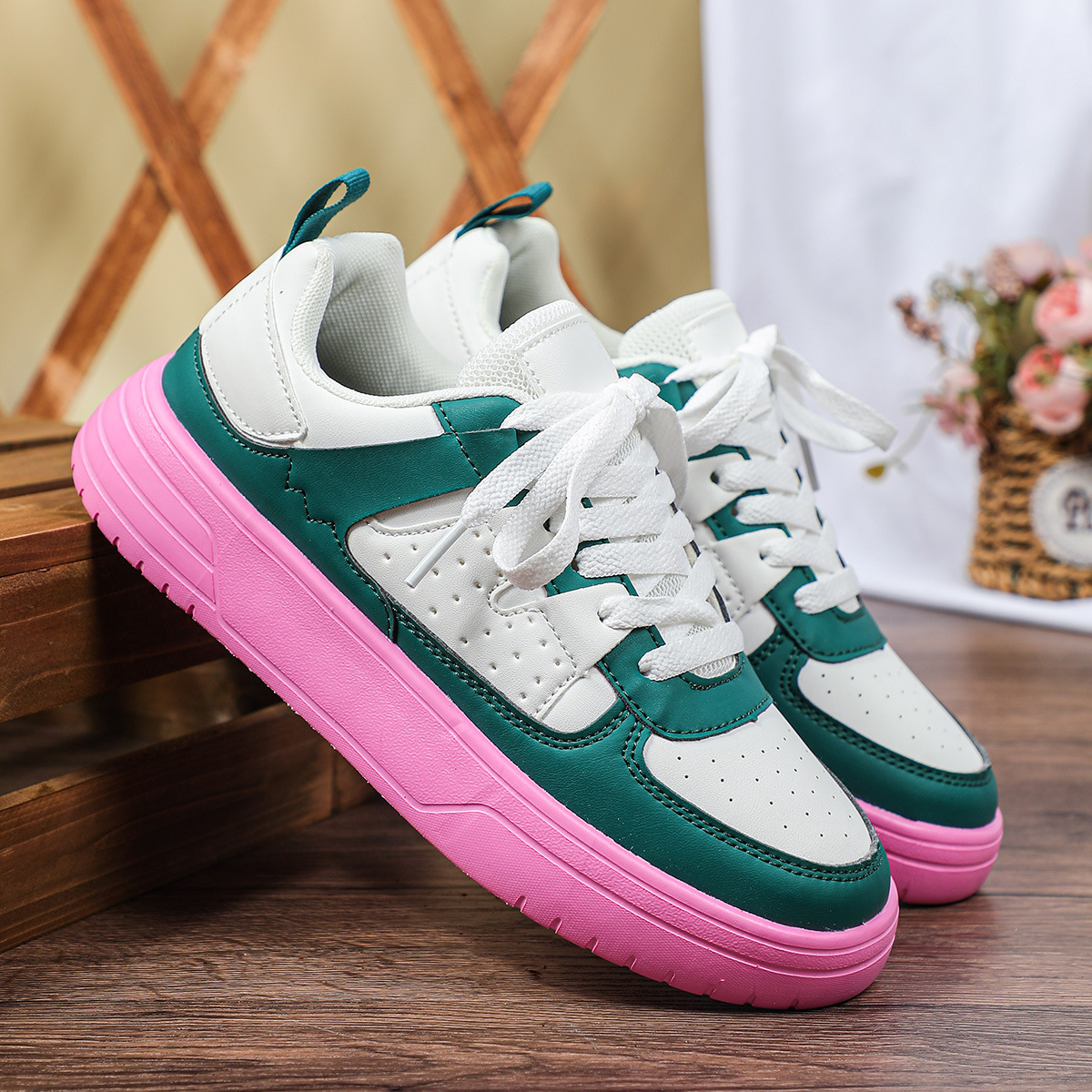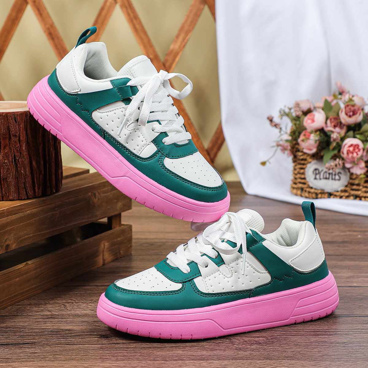 한국 스타일 트렌디 한 연인의 플랫폼 신발 부드러운 밑창 편안한 스포츠 신발 레이스 업 패션 야외 캐주얼 여성 신발스토어 가기