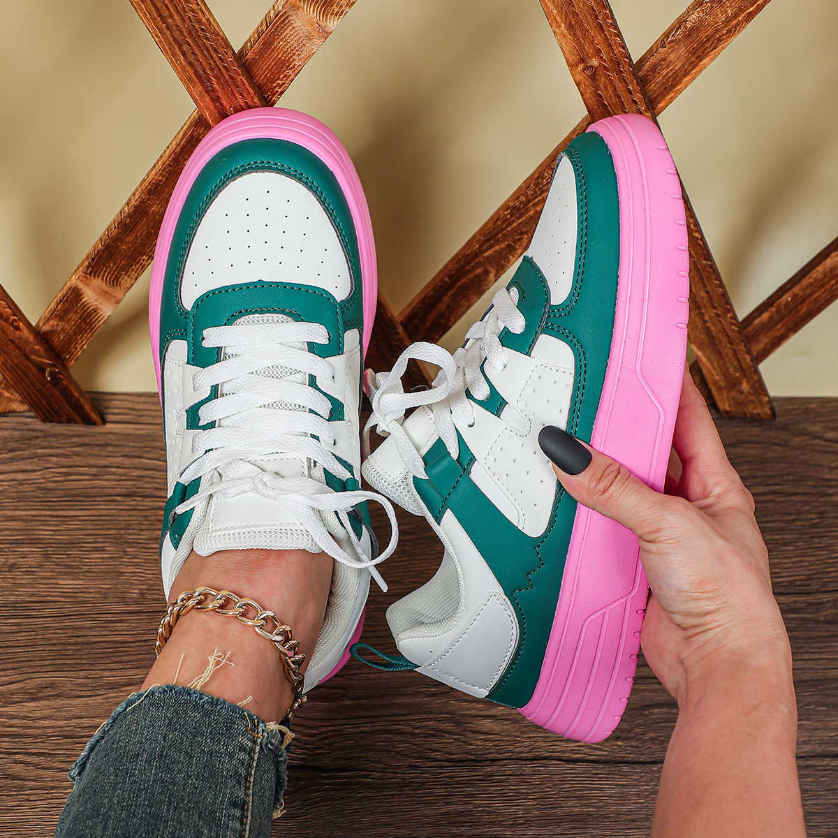 한국 스타일 트렌디 한 연인의 플랫폼 신발 부드러운 밑창 편안한 스포츠 신발 레이스 업 패션 야외 캐주얼 여성 신발